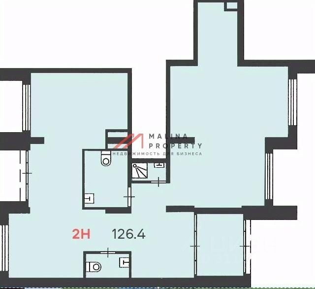 Помещение 126,4 м2, располагается на 1 этаже, открытая планировка, отдельный вход с фасада, высота потолка 4,2 м, витринные окна по фасаду. Электрическая мощность 25,28 кВт. Парковка перед фасадом. Место для размещения рекламы.