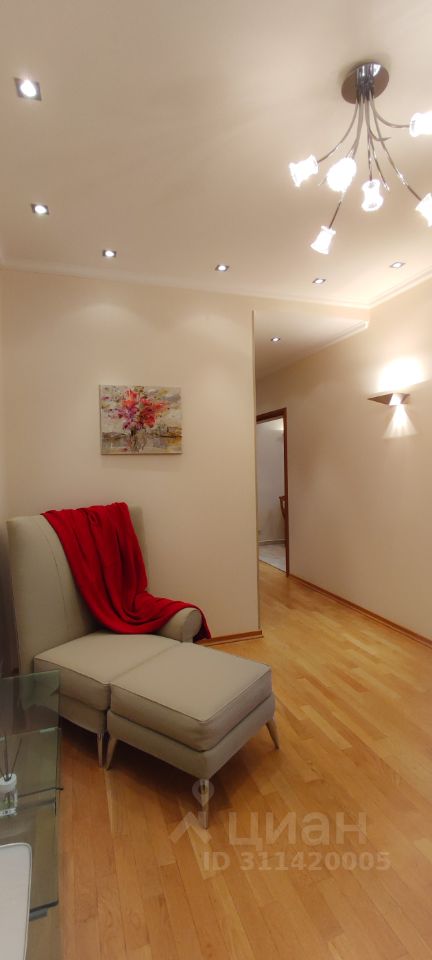 Планировка квартиры, состоящая из просторной гостиной, с отдельно выделенной рабочей зоной, уютной спальней и современной кухней, позволит комфортно проживать одному человеку или супружеской паре без детей и животных.