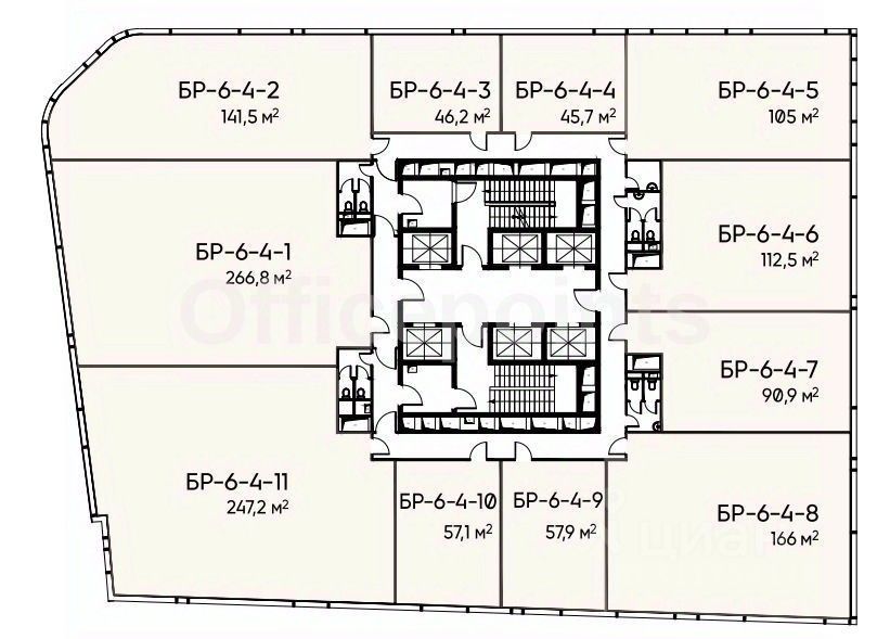 Помещение без отделки, открытая планировка. Приточно-вытяжная система вентиляции, центральное кондиционирование. Подземная парковка на 150 м/мест.