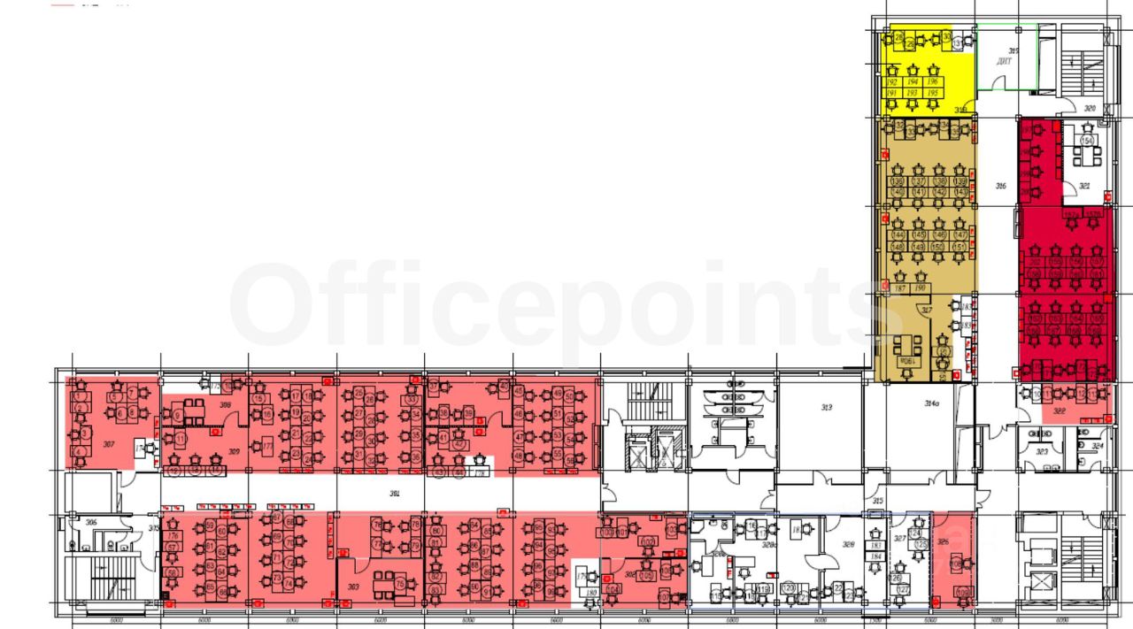 В помещении выполнена офисная отделка, смешанная планировка.