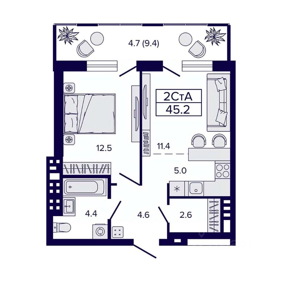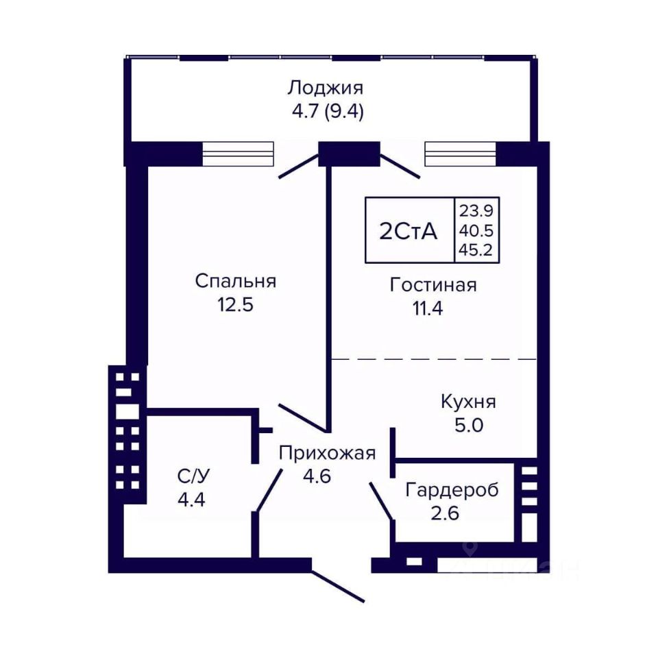Общая площадь45,2 м2