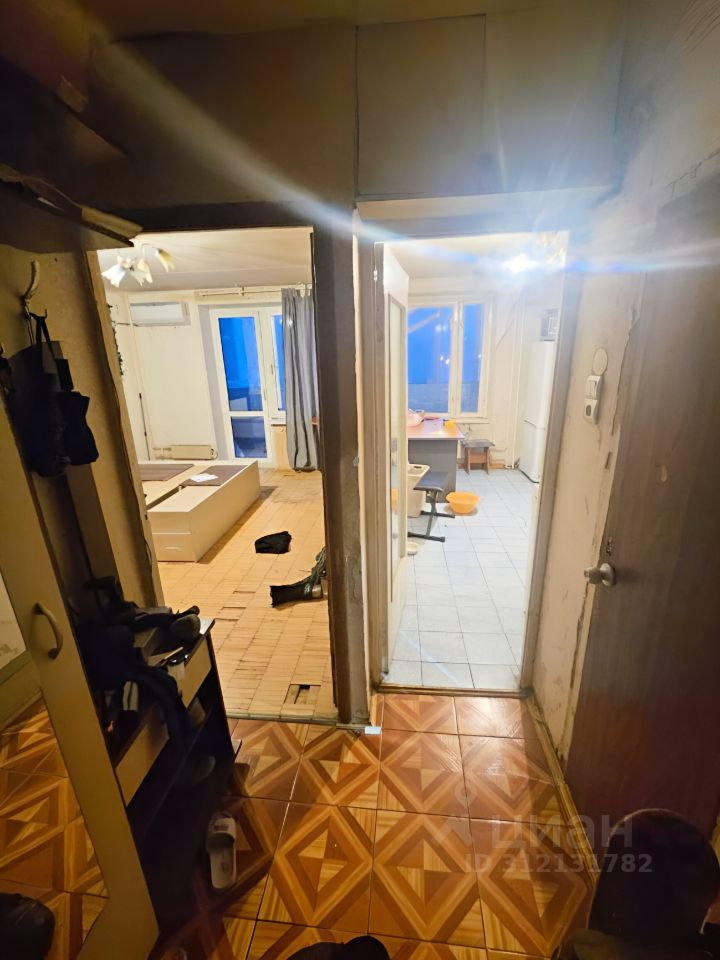 Продается однокомнатная квартира в Москве по адресу: Харьковский проезд, 7к1А. Общая площадь квартиры составляет 34,4 кв. м, жилая площадь — 19 кв. м, а кухня — 10 кв. м. Квартира расположена на 5 этаже 16-этажного панельного дома.