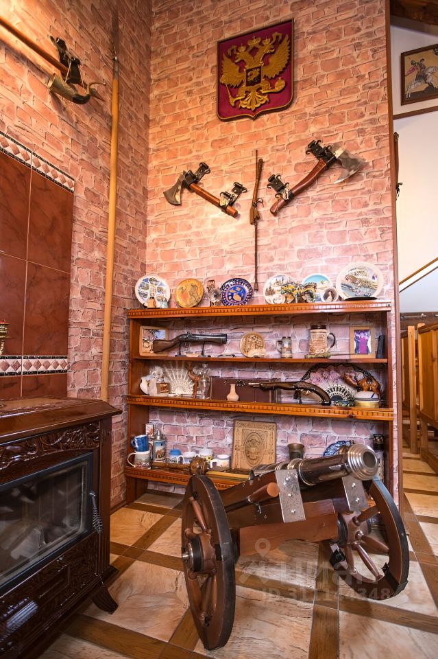 ЛОТ 6061218 Жилой дом из кирпича 371 кв. м общей площади. Описание коттеджа: - цокольный этаж: котельная со шведским котлом и комплексом химводоочистки, прачечная, санузел с душевой, спортивный зал и кладовки, помещение выхода в сад, - первый этаж: прихожая, кухня, санузел, гостиная с камином, спальня, вторая кухня с выходом в беседку, помещение выхода в сад, - второй этаж: два кабинета и большая спальня, гардеробная, санузел с паровой баней и большой круглой джакузи, - межэтажная комната (столовая оружейная, с пушками, репликами старинного оружия и мебелью стилизованной под средневековье, с камином, - гараж на 2 автомашины, - подвал (погреб) 2 комнаты 15 кв. м, Во всех помещениях имеется удобная дубовая мебель, выполненная на заказ. - Деревянные оконные рамы изготовлены на заказ в Германии. На каждом окне дома красивая кованная решетка, Гостевой домик 180 кв. м: первый этаж из кирпича баня на дровах с 2-мя комнатами отдыха, парной и душевой, второй этаж из рубленного бревна (две однокомнатных квартиры) и мансарда. Баня и гостевая квартира меблированы в деревенском стиле.
