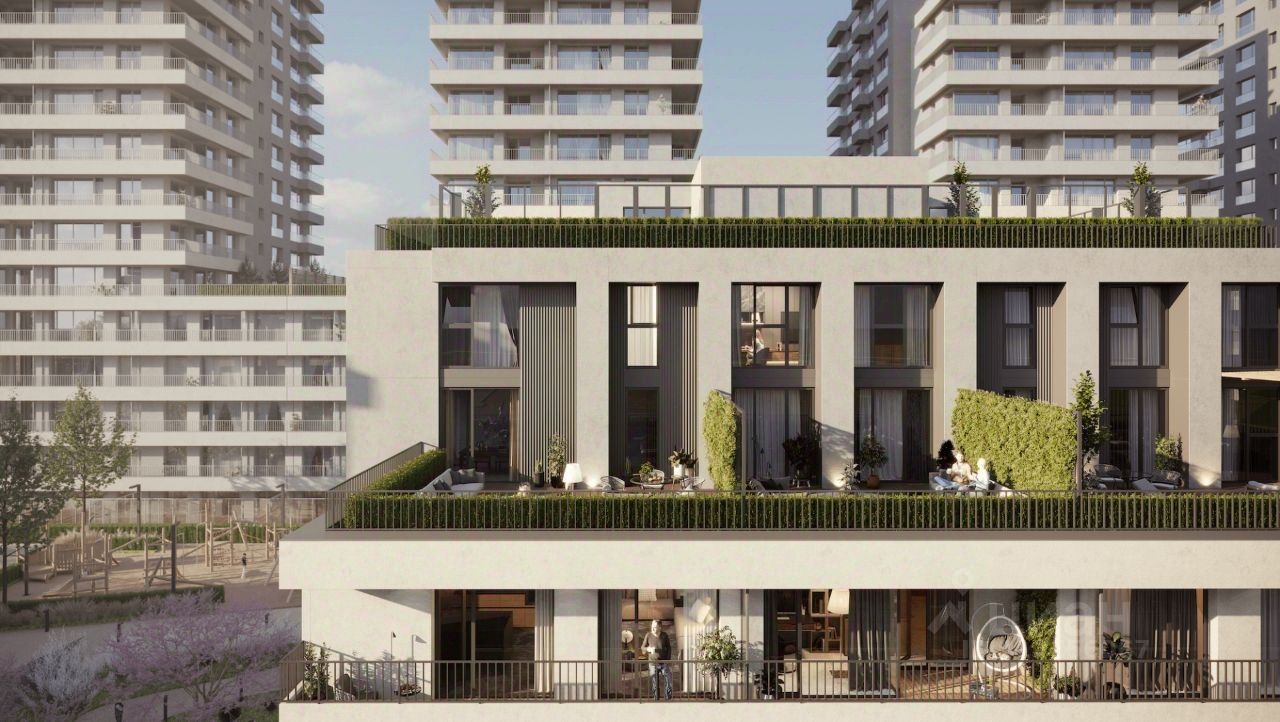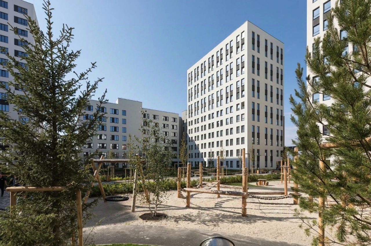 Квартира с кухней-гостиной и тремя спальнями в квартале Авиатор. Особенности планировки: разнесённые спальни, свободная планировка, терраса на крыше.