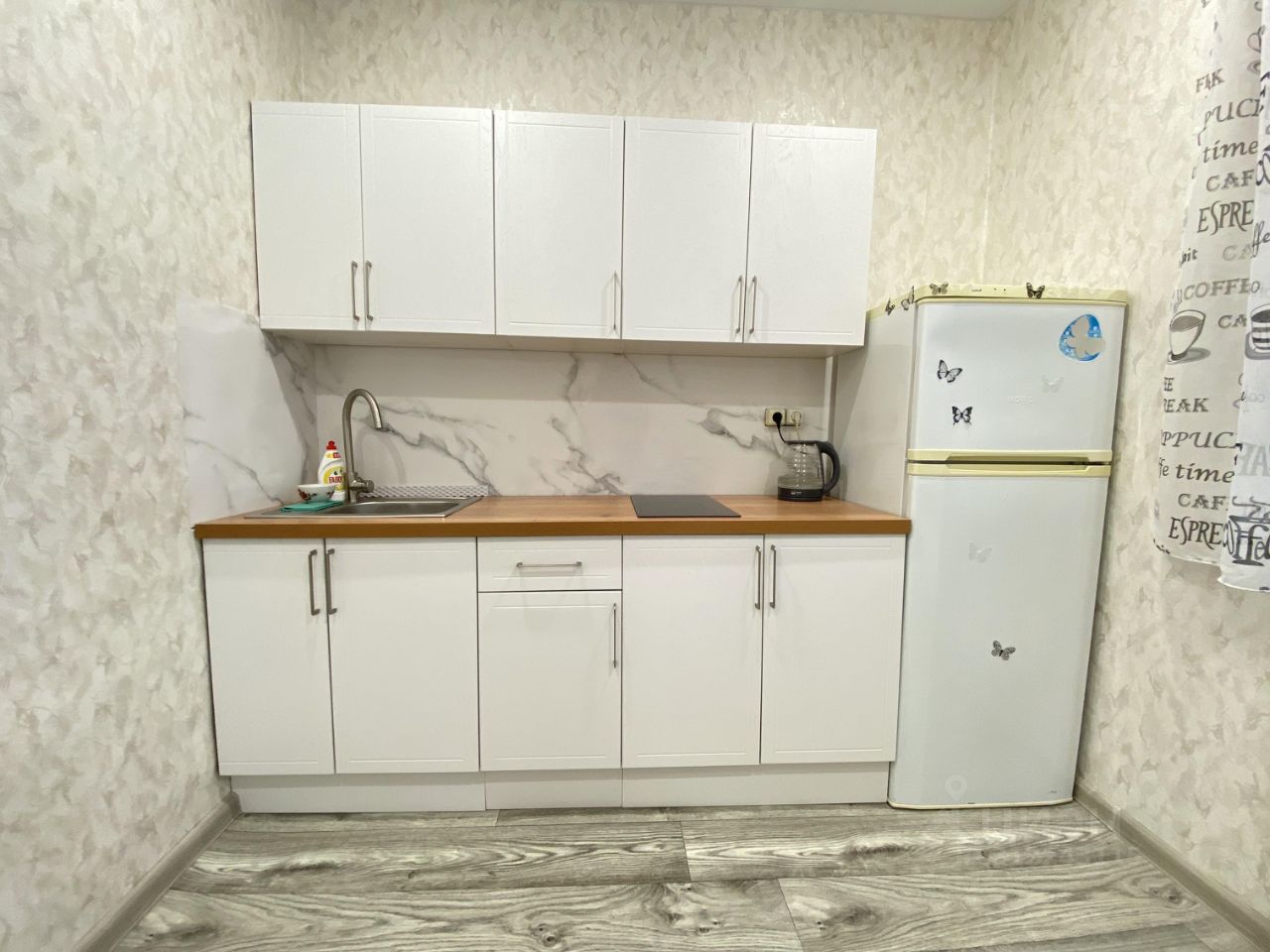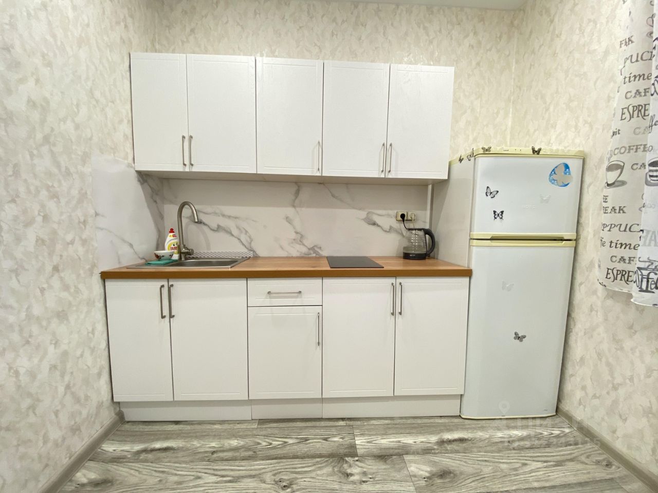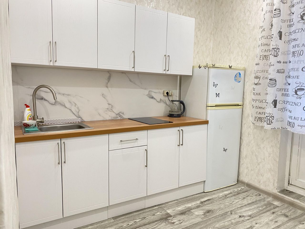 В квартире есть косметический ремонт, она полностью обставлена мебелью как в комнате, так и на кухне. В наличии вся необходимая техника: холодильник и стиральная машина. Планировка удобная, с лоджией и ванной комнатой, где установлена ванна.