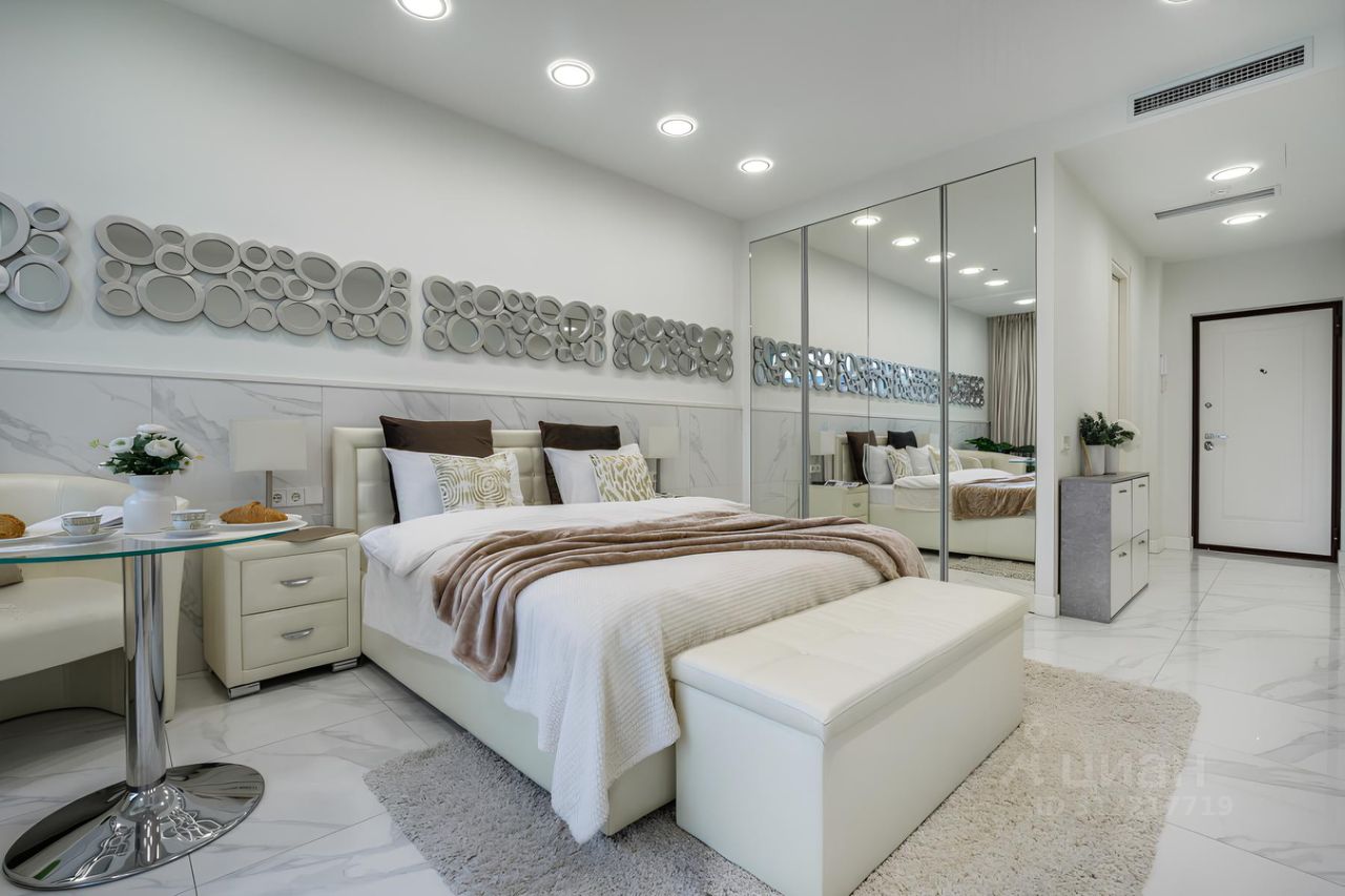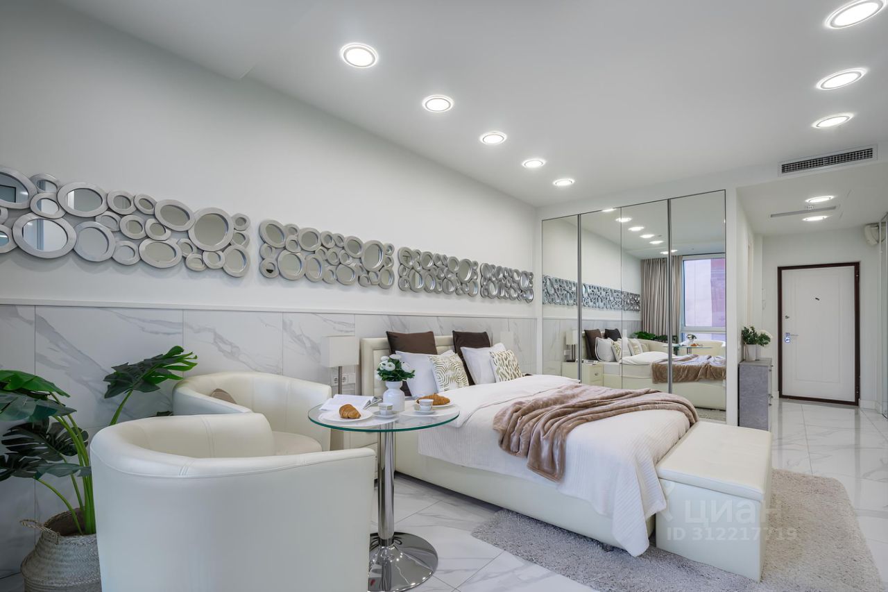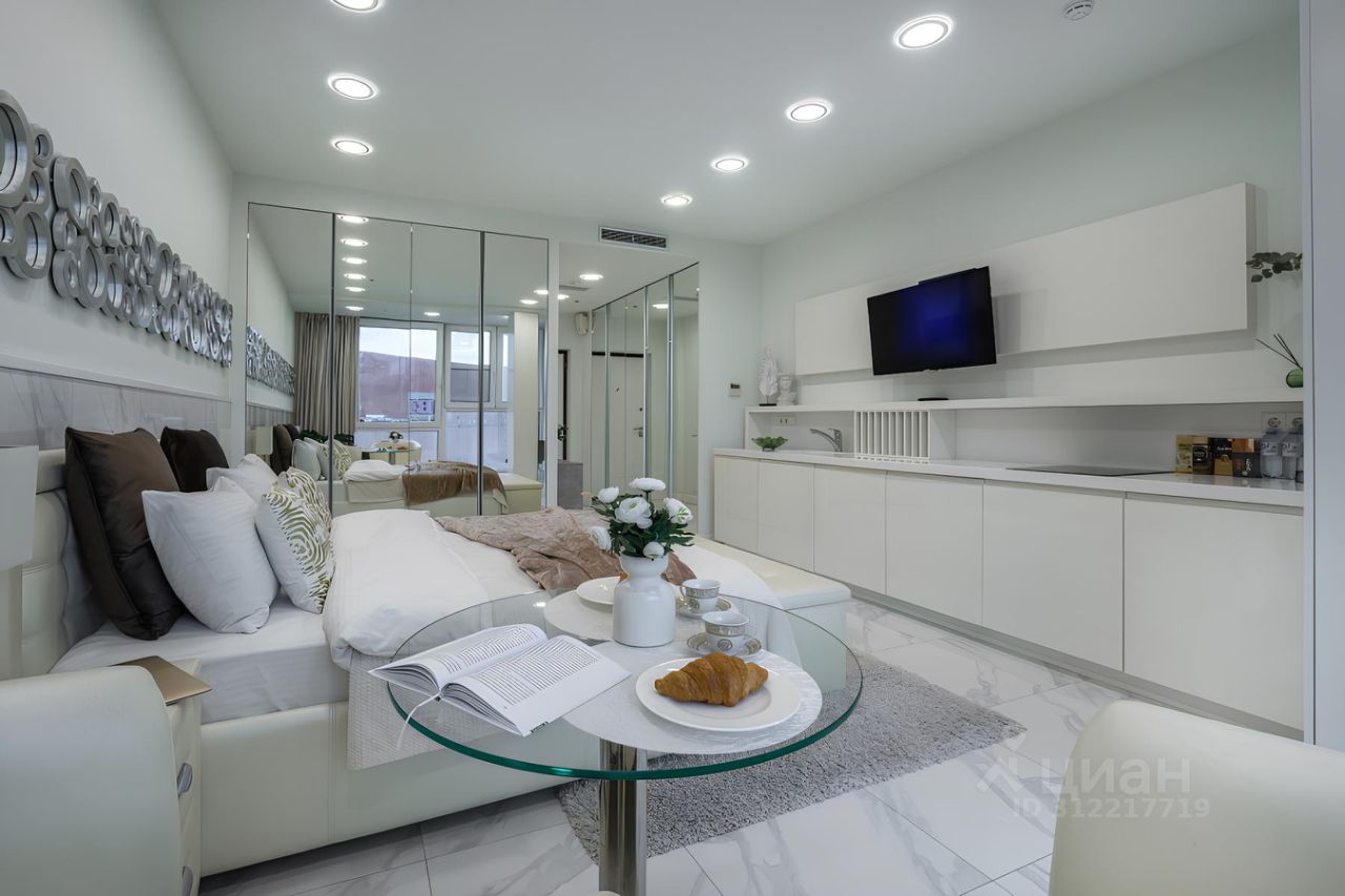 Изысканные апартаменты на 7 этаже с видом на парк. Панорамные окна, ванная, много зеркал и много мест для хранения! Метро ЦСКА (5 минут пешком)