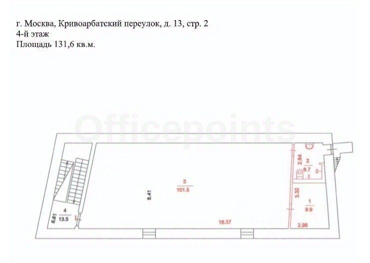 Сдается в аренду офисное помещение на 4 этаже в особняке В класса, который находится по адресу: Кривоарбатский пер., д. 13 стр. 2.