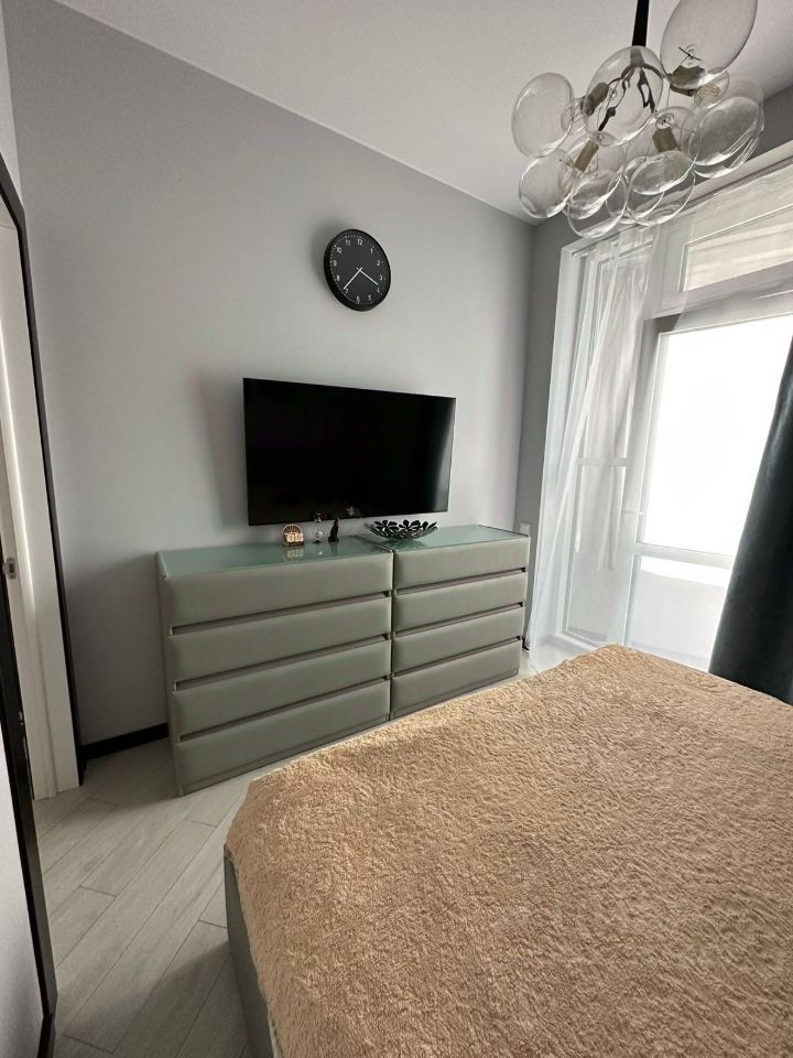 Продается прекрасная двухкомнатная (ЕВРО) квартира в престижном, новом, монолитном доме в комплексе бизнес-класса ''Символ'', на первой линии парка Зеленая Река (вход в парк сразу за домом). Квартира расположена в малоэтажном доме (всего 7 жилых этажей, 4 квартиры на лестничной клетке, 127 квартир в доме) с высокими потолками (3,2 м), и шикарной входной группой (подъездом). Дом с собственной огороженной территорией со шлагбаумом, и надземным и подземным паркингом. Квартира с очень удачной планировкой с большой кухней-столовой (укомплектованной кухонным гарнитуром с дорогой техникой), спальней правильной формы, просторной гардеробной, большим сан узлом (полностью укомплектован всей необходимой дорогой сантехникой, техникой и мебелью) и просторным коридором.