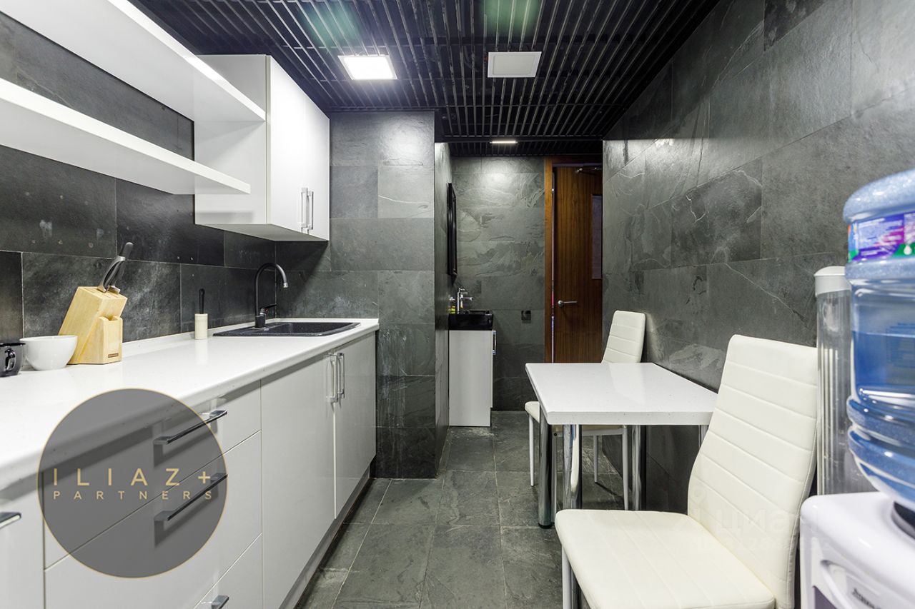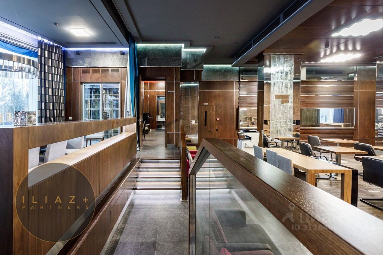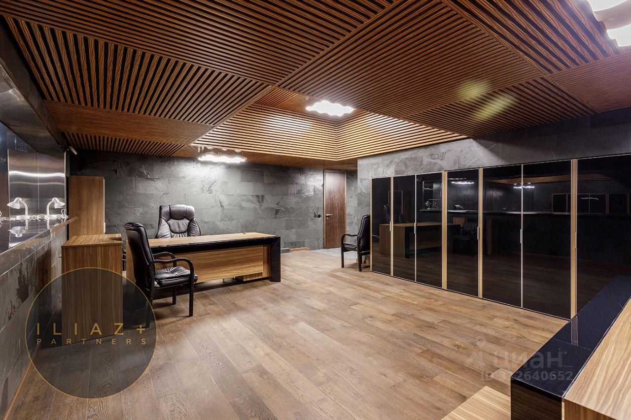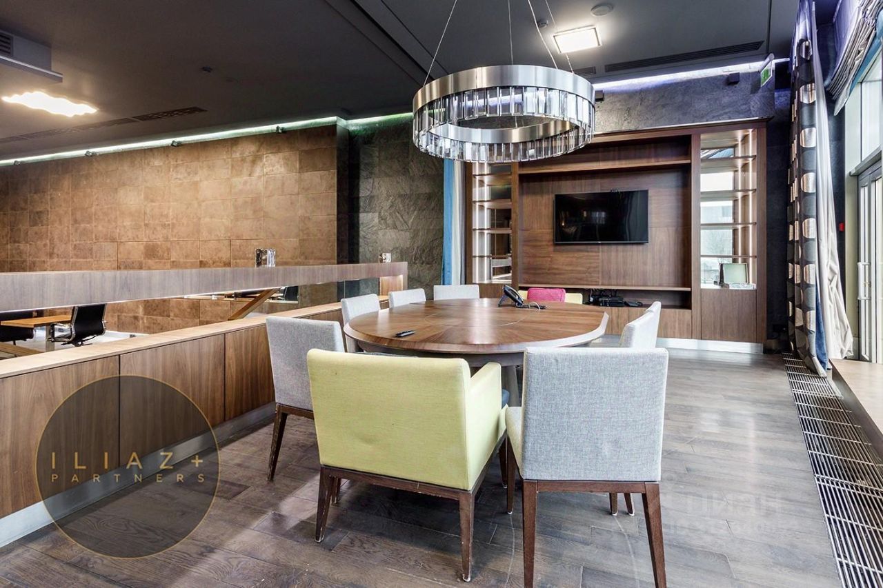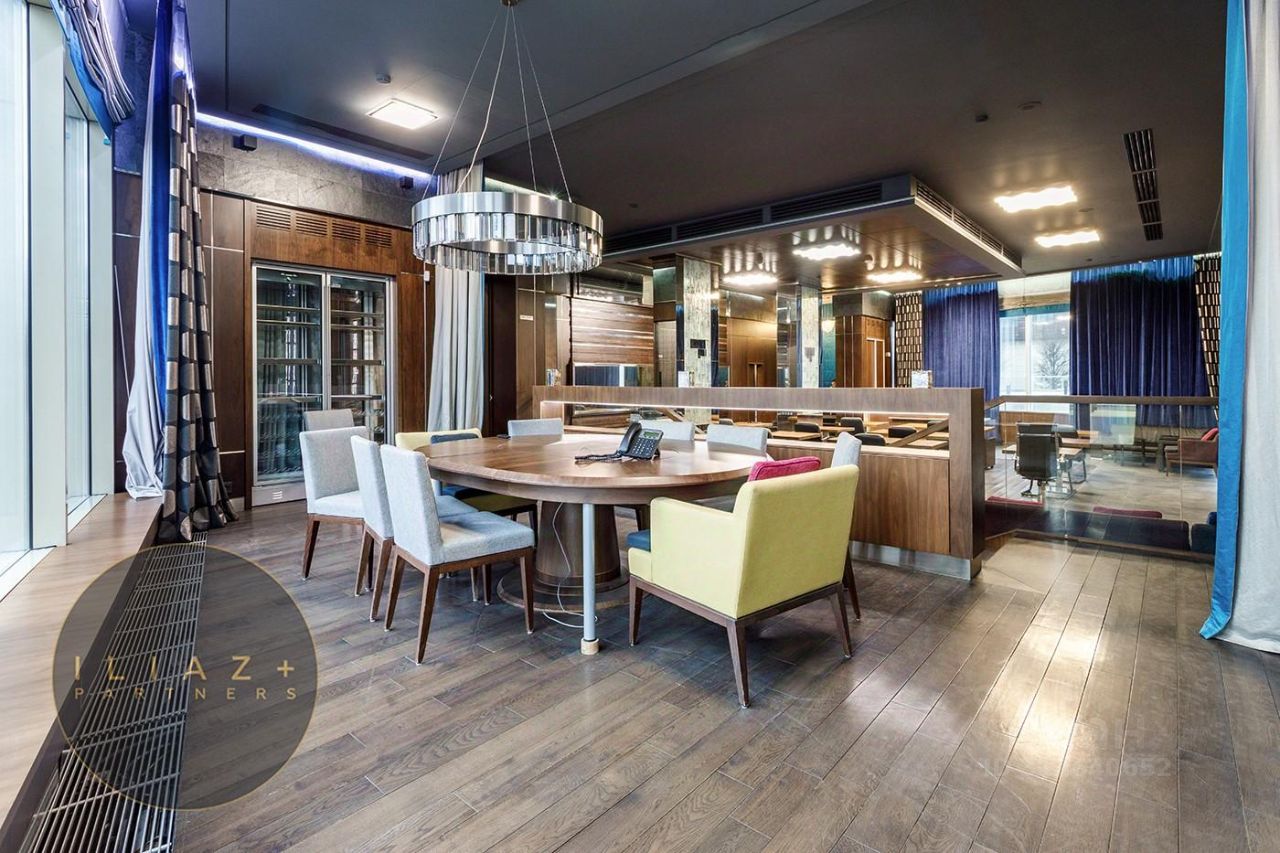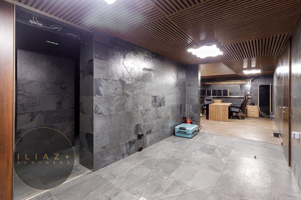 Дизайнерская отделка с натуральными породами дерева и камня, итальянская мебель, офисная мебель и оргтехника, высокие потолки, продуманное эффектное цветовое решение, местная система кондиционирования и приточная вентиляция.