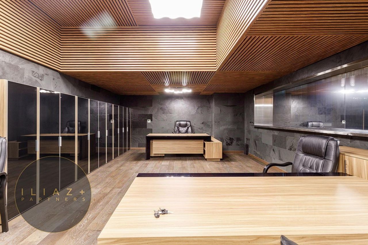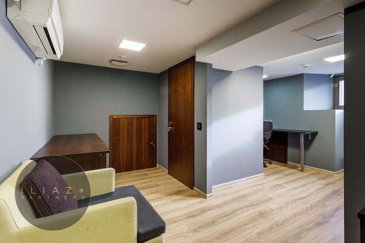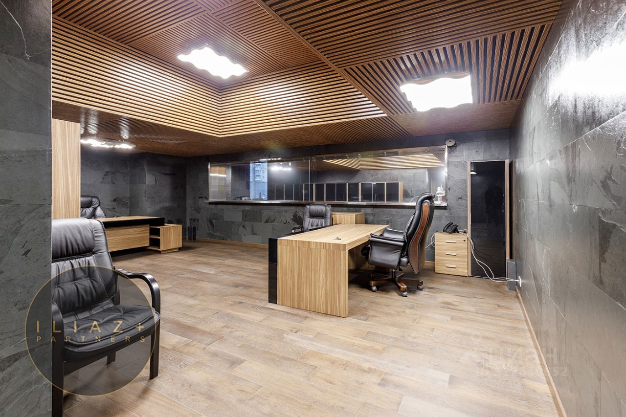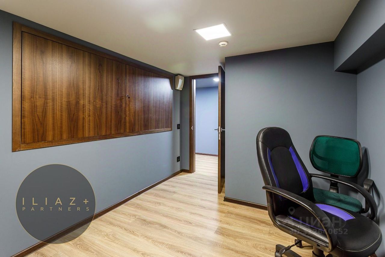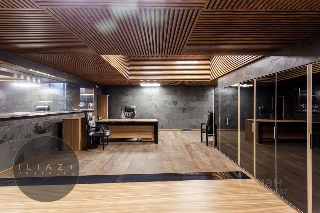 Дизайнерская отделка с натуральными породами дерева и камня, итальянская мебель, офисная мебель и оргтехника, высокие потолки, продуманное эффектное цветовое решение, местная система кондиционирования и приточная вентиляция.