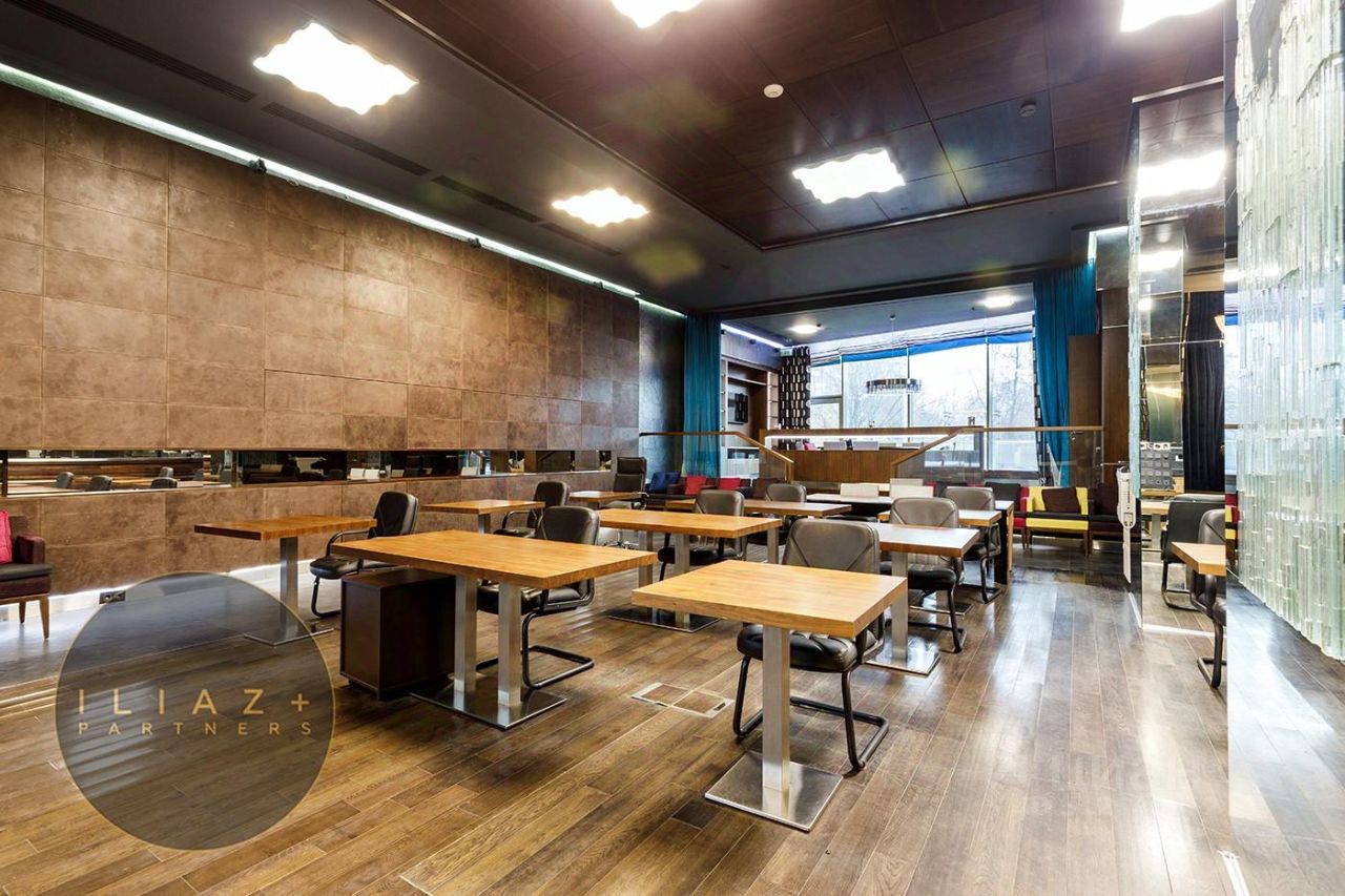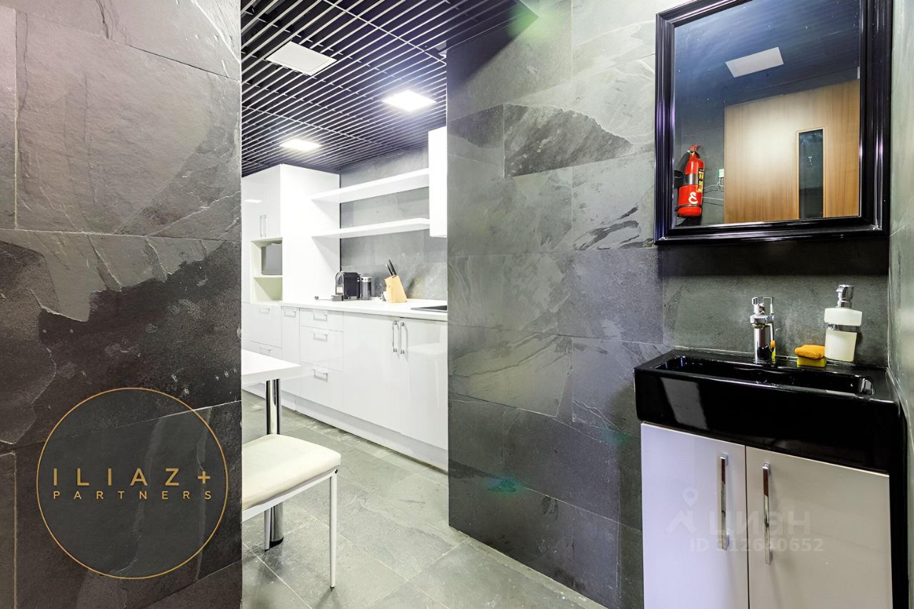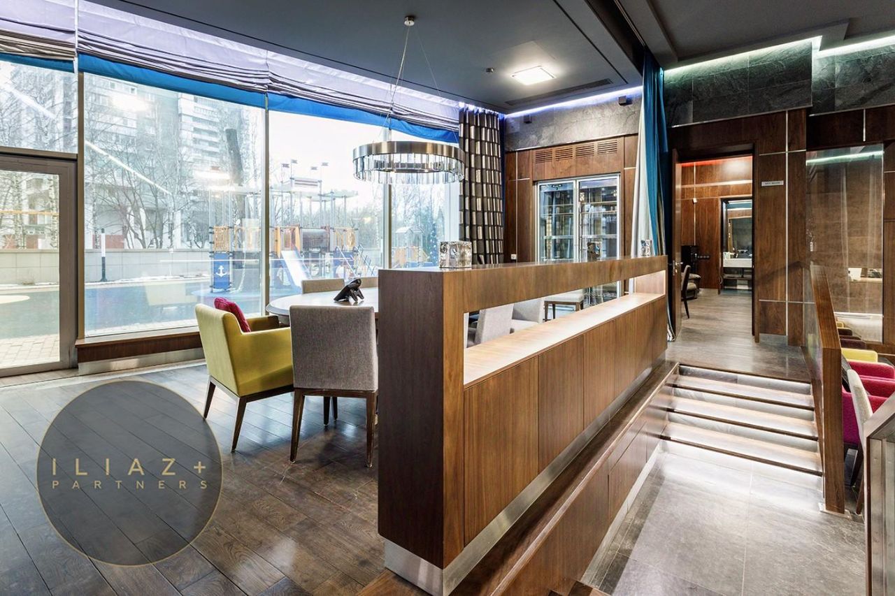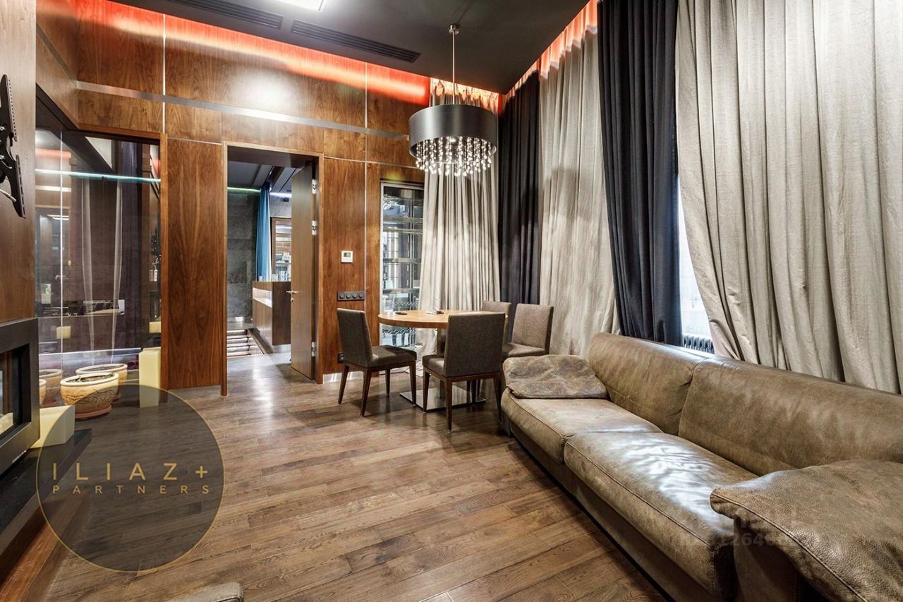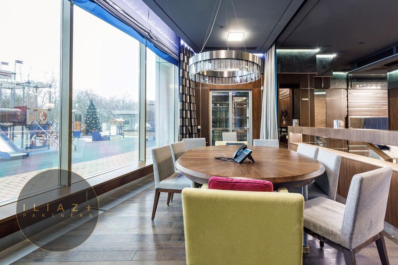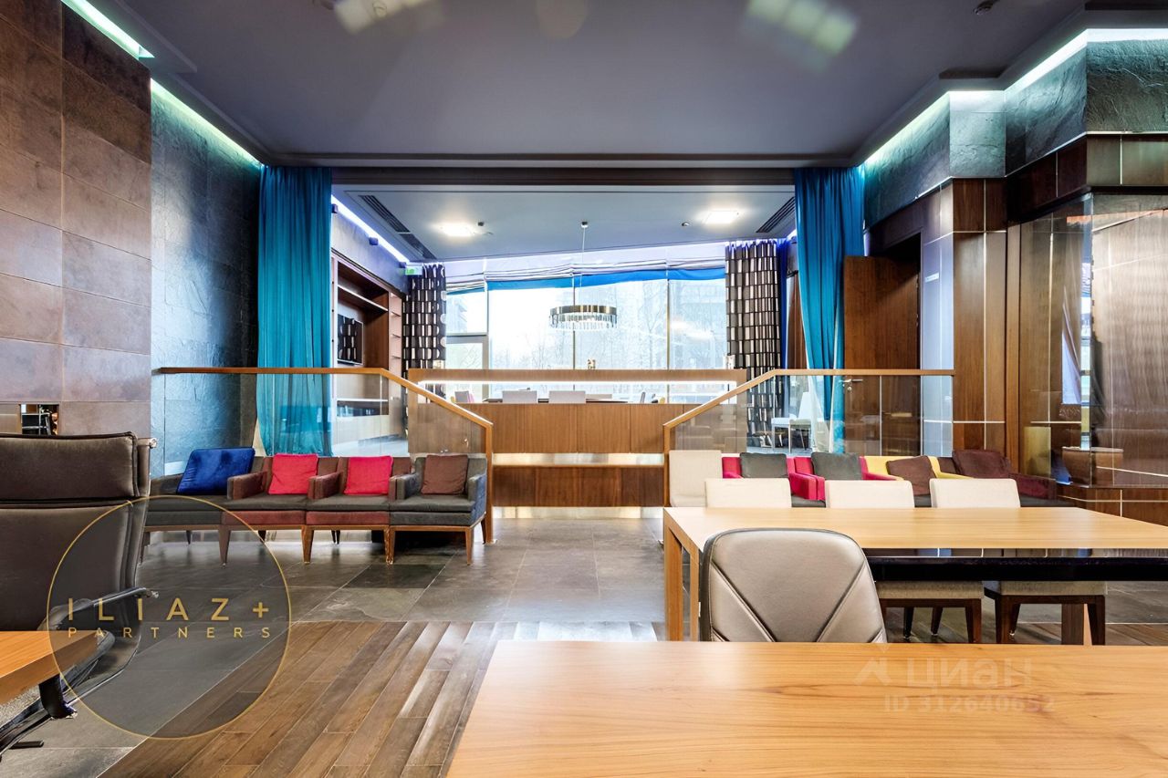 Дизайнерская отделка с натуральными породами дерева и камня, итальянская мебель, офисная мебель и оргтехника, высокие потолки, продуманное эффектное цветовое решение, местная система кондиционирования и приточная вентиляция.