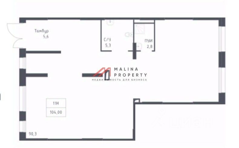 Помещение 104 м2 располагается на 1 этаже, открытая планировка, отдельный входа с фасада, высота потолка 4 м, витринные окна по фасаду. Электрическая мощность 24 кВт. Помещение под отделку. Место для размещения рекламы.