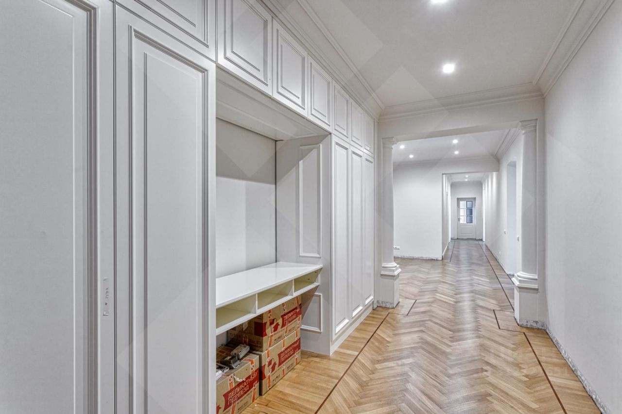 Дореволюционный особняк, ныне жилой отреставрированный элитный дом. Ухоженная территория и престижное окружение. В квартире выполнен качественный ремонт по индивидуальному проекту в классическом стиле. Функциональная планировка: просторная гостиная-столовая, кухня, 4 комнаты свободного назначения, 2 полноценных санузла, 1 гостевой санузел, гардеробная комната, постирочная. Встроенная кухня оснащена современной бытовой техникой от ведущих мировых производителей. Сплит система, кондиционирование.