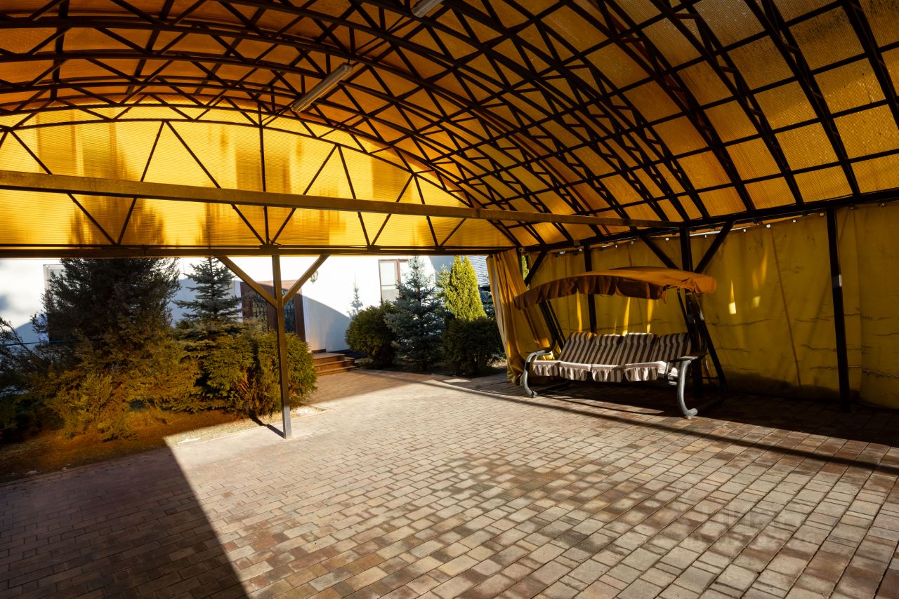 На участке сделан ландшафтный дизайн: высажен газон, туи, лесные и декоративные деревья, вымощены дорожки, установлено освещение. Двор частично крытый с арочным высоким навесом и зоной отдыха. По периметру участка установлено видеонаблюдение с выводом в дом. Продуманная планировка дома с легкостью разместит большую семью, а транспортная доступность и развитая инфраструктура сделает комфортным круглогодичное проживание. Прописка московская.
