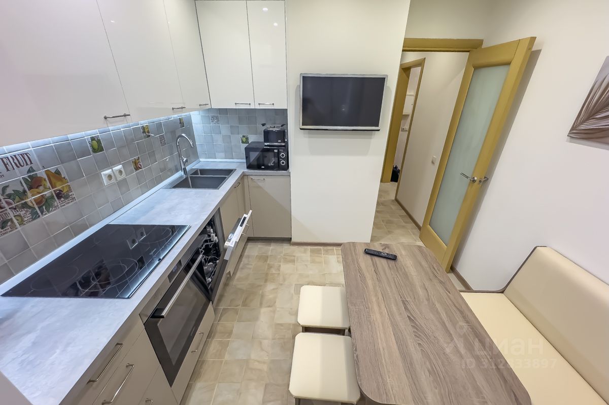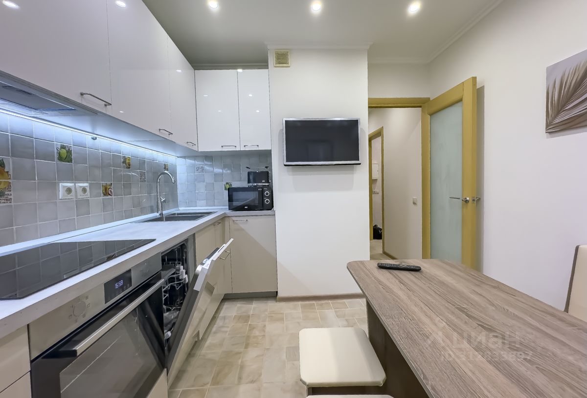 Квартира имеет дизайнерский ремонт и полностью меблирована. В просторной жилой комнате и уютной кухне площадью 9 кв. м. есть всё необходимое для комфортной жизни. В квартире установлены современные кондиционер, холодильник, телевизор, посудомоечная и стиральная машины. Окна выходят во двор, поэтому в квартире тихо и спокойно. Ванная комната оборудована ванной, а наличие отдельного санузла добавляет удобства.