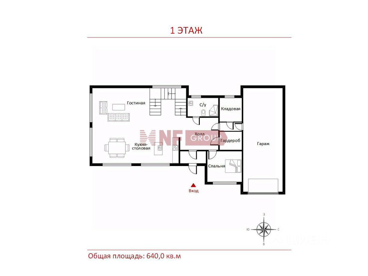 Общая площадь640 м2