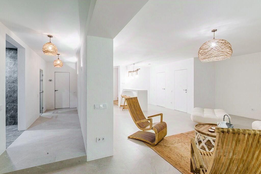 Дом построен по современным технологиям с высококачественными отделочными материалами. Интерьер оформлен стильной мебелью, панорамные окна обеспечивают светлое пространство. Установлены системы вентиляции и отопления, а также сантехника от брендов ''VAGNODESIGN LONDON'' и ''VADO''