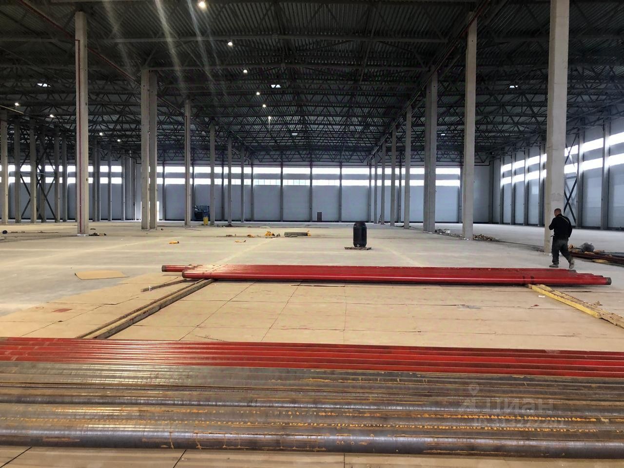 #### Технические характеристики склада: - Нагрузка на пол: до 6 тонн на квадратный метр. - Ворота: докового типа и нулевого уровня (с земли). - Высота потолков: 12 метров. - Шаг колонн: 12х24 метра. - Пол: высококачественный бетон с антипылевым покрытием. - Вентиляция: приточно-вытяжная система. - Система пожаротушения: спринклерная. - Оповещение при пожаре: сигнализация.