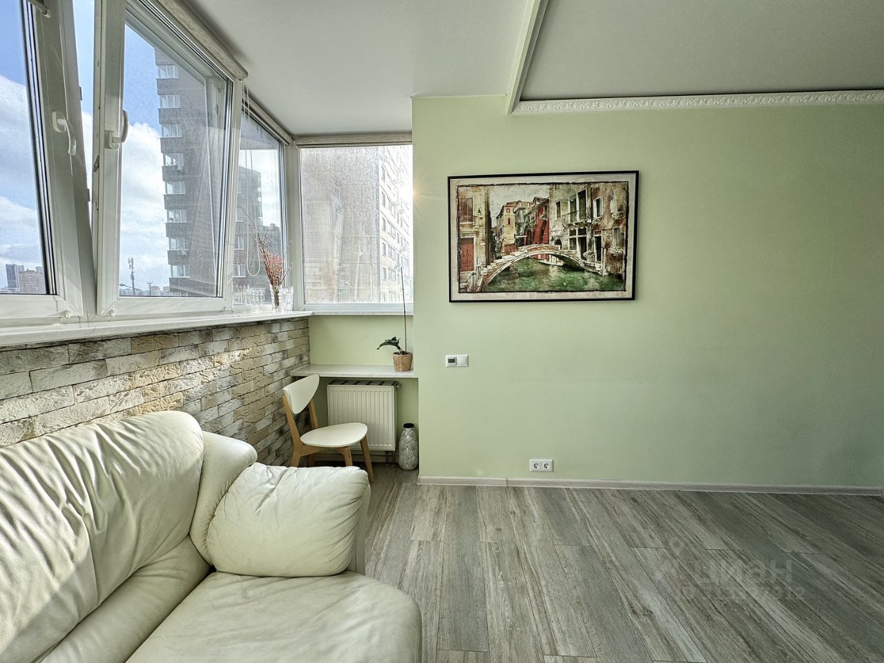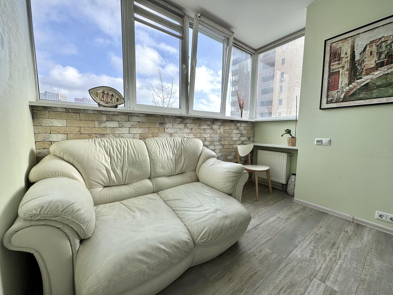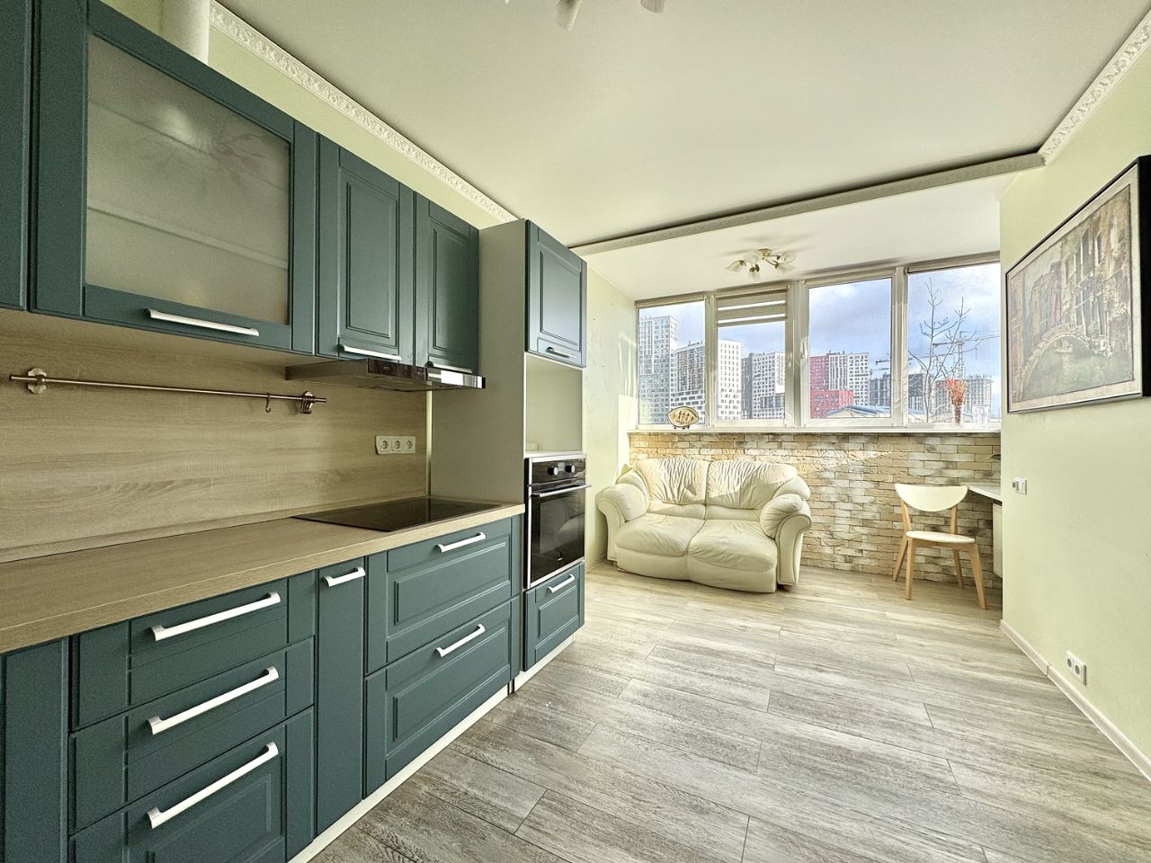 Лоджия объединена с кухней и при этом имеет место для хранения, (несущая конструкция не затронута, радиатор на месте, перепланировкой это не является)