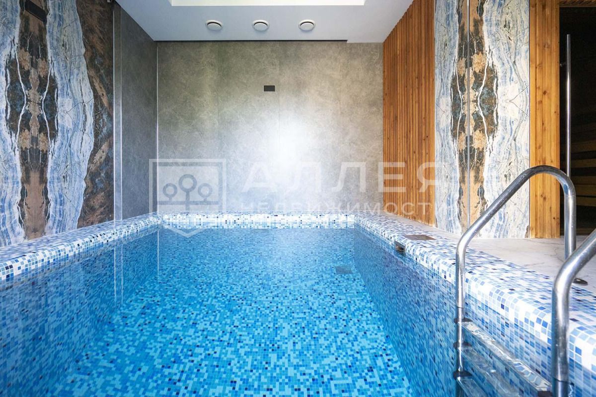 ДОМ: Дом с бассейном. Благодаря второму свету и окнам в пол в доме очень светло и много воздуха. Сделана современная удобная планировка. Есть спальня на первом этаже для гостей или родителей, кабинет, спортзал, теплый гараж, игровая. В Мастер спальне свой отдельный санузел. Дом полностью меблирован и готов к проживанию. Использованы дорогие отделочные материалы и премиальная техника. Кухня Германия, холодильник Liebherr. На стенах декоративная штукатурка, на полу паркетная доска. Установлены теплые полы и кондиционеры. Из столовой есть выход на крытую террасу. В котельной оборудование Buderus.