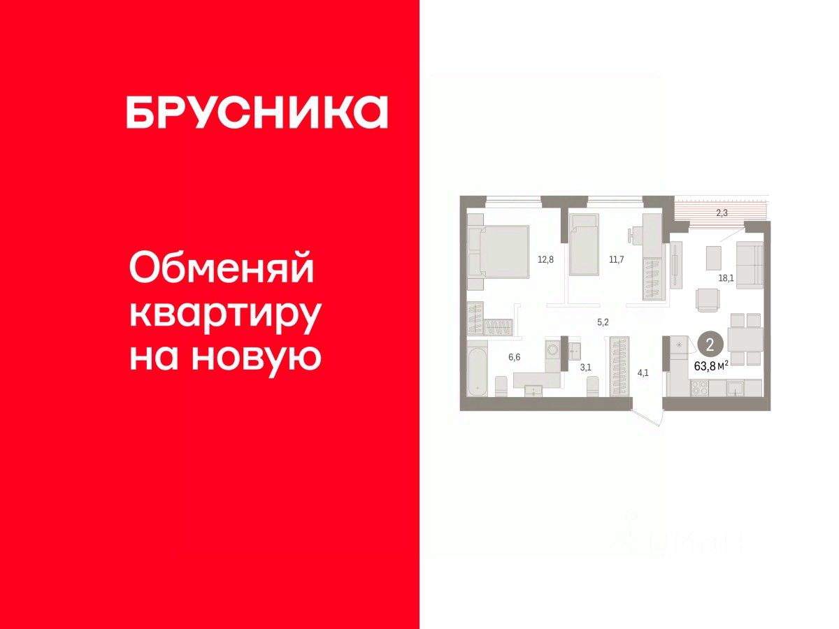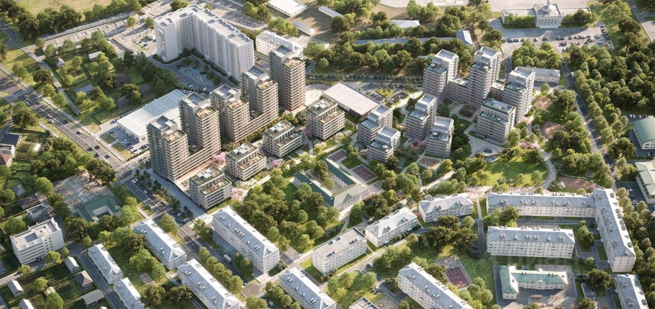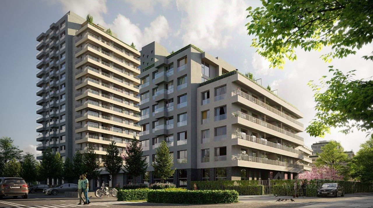 Квартира с кухней-гостиной и двумя спальнями в квартале Авиатор. Особенности планировки: свободная планировка, терраса на крыше.
