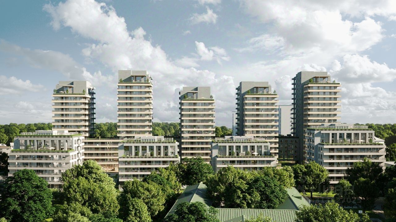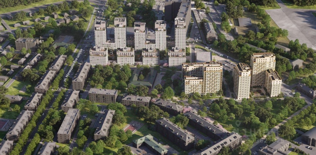 Квартал состоит из восьми домов. Вдоль улицы Аэропорт расположено 6-18-этажное здание с видовыми квартирами. Оно защищает внутреннее пространство от шума и пыли. В центре — четыре 7-9-этажные урбан-виллы. Для них характерны увеличенная площадь квартир, повышенная приватность и малое соседство (30 — 40 квартир). Завершают комплекс два полузакрытых блока высотой 8-16 этажей с фасадами фисташкового цвета и подземной парковкой. Благодаря переменной высотности застройка приобретает человеческий масштаб, во дворы проникает больше света, а число квартир, из которых открывается красивый вид, значительно увеличивается.