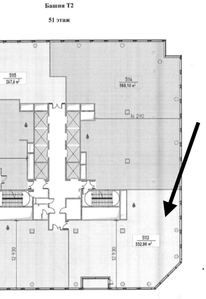 Офис расположен на 51 этаже, можно присоединить соседний 568,1 кв.м и занять половину этажа