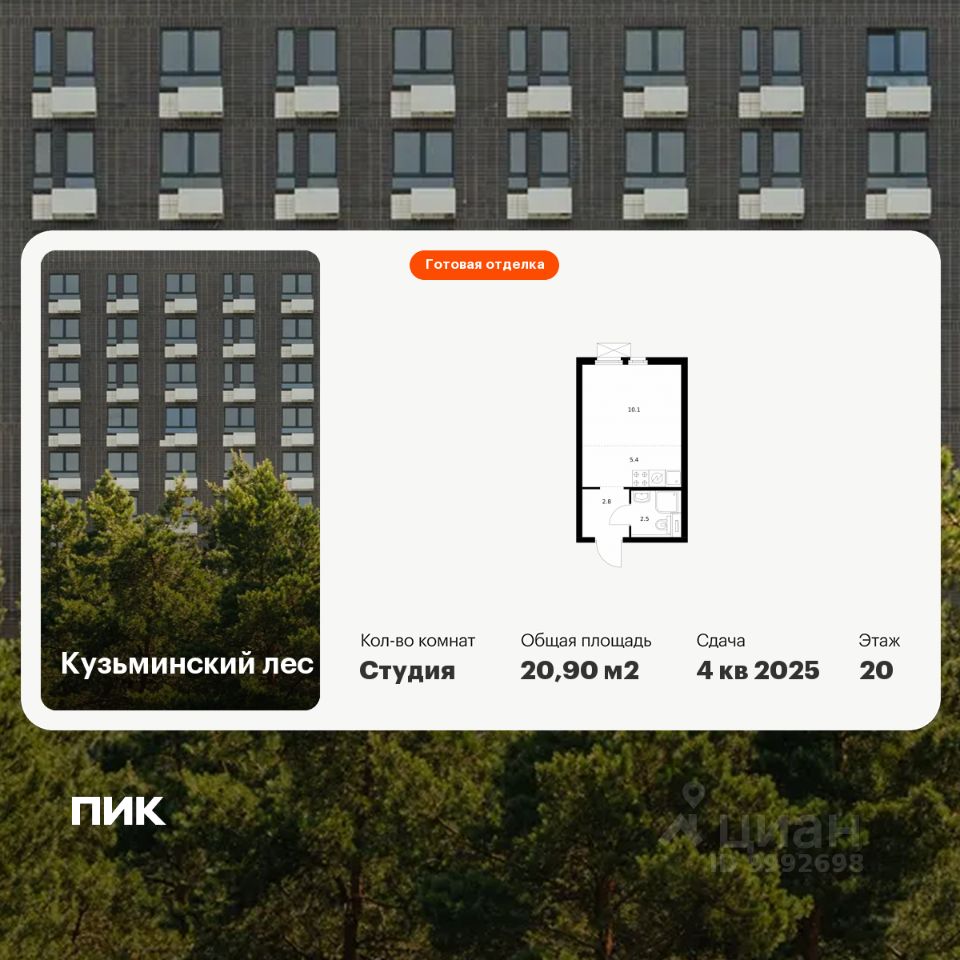 Продаётся квартира-студия площадью 20,9 кв.м на 20 этаже 25 этажного дома (Корпус 12, Секция 1) проекта ПИК Кузьминский лес. Светлый просторный подъезд на уровне земли, функциональная планировка, большие окна, c отделкой.