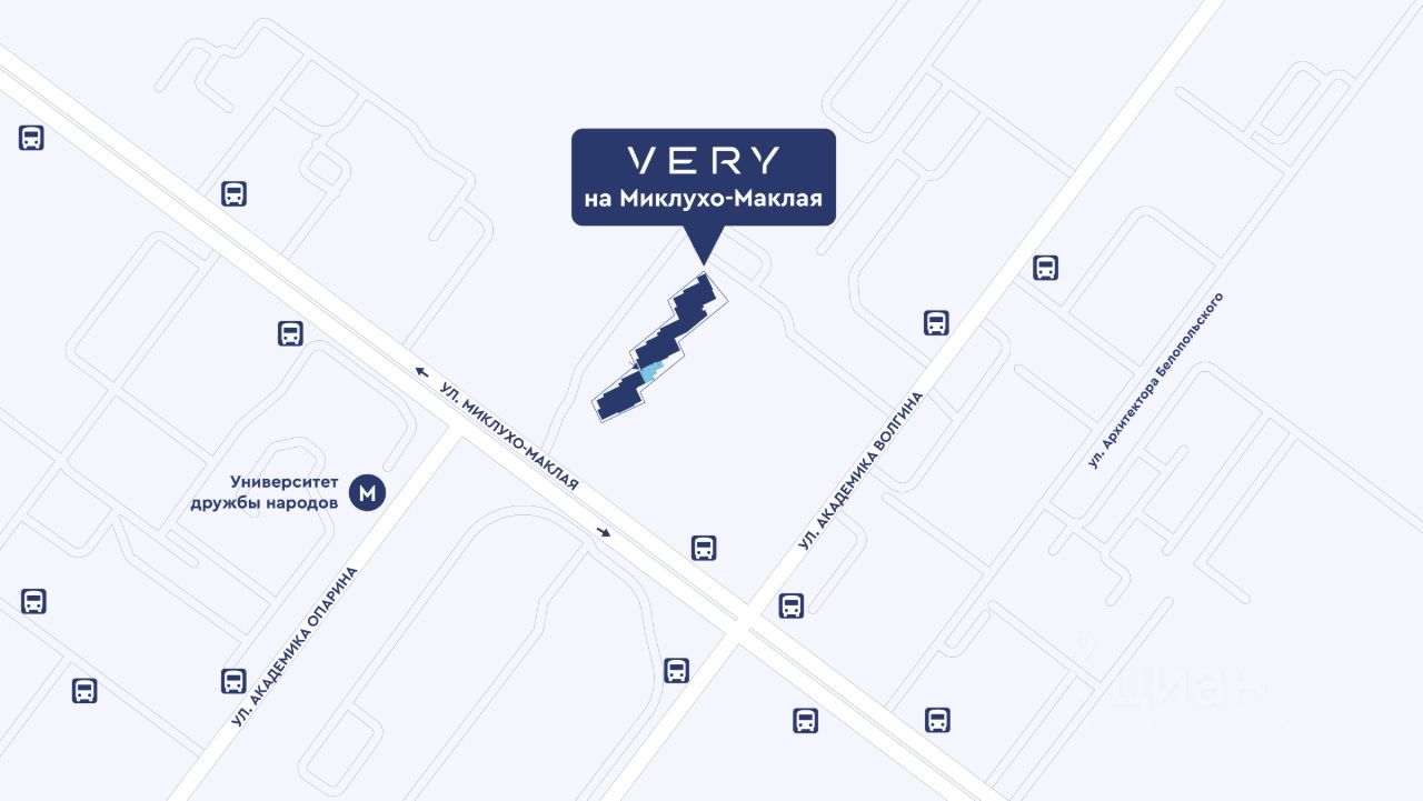 ВИДНЫЙ во всех смыслах ЖИЛОЙ КВАРТАЛ Жилой квартал VERY на Миклухо-Маклая состоит из трех 19-этажных корпусов. Располагается в престижном, развивающемся Обручевском районе, в шаге от Юго-Западного лесопарка, в 2 минутах от новой станции метро ''Университет Дружбы Народов''.