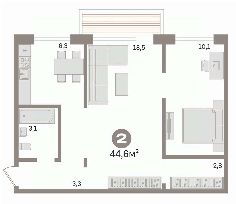 Общая площадь44,6 м2