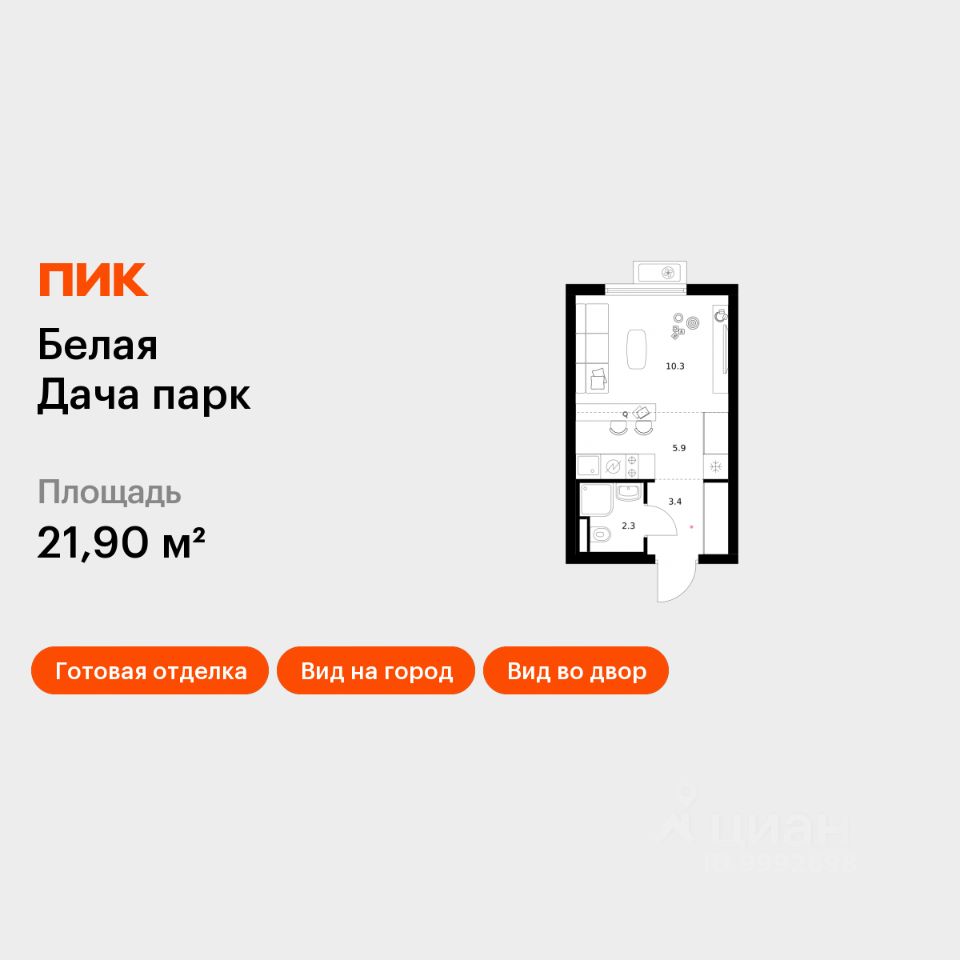 Продаётся квартира-студия площадью 21,9 кв.м на 15 этаже 15 этажного дома (Корпус 16.1, Секция 4) проекта ПИК Белая Дача парк. Светлый просторный подъезд на уровне земли, функциональная планировка, большие окна, c отделкой.