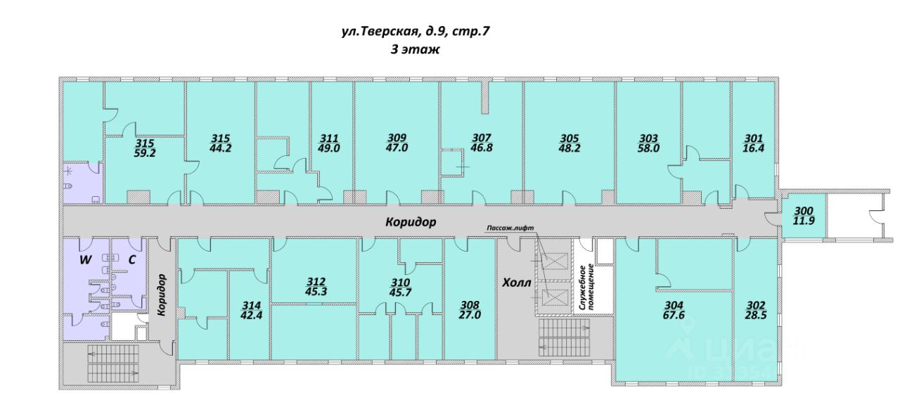 Планировка: кабинетная (15 кабинетов)