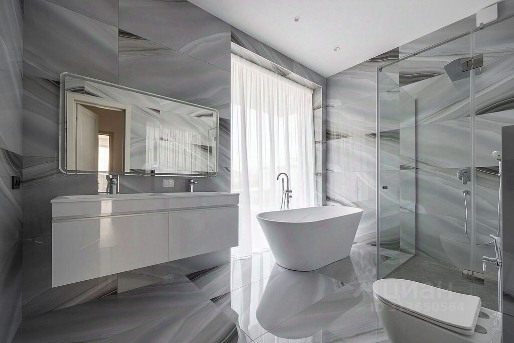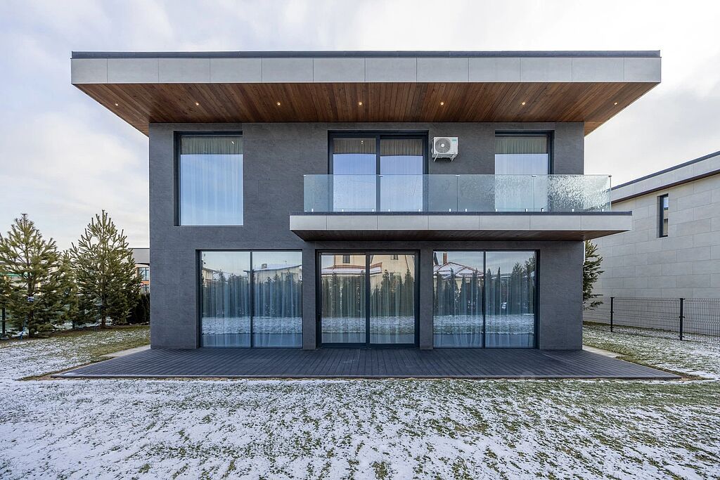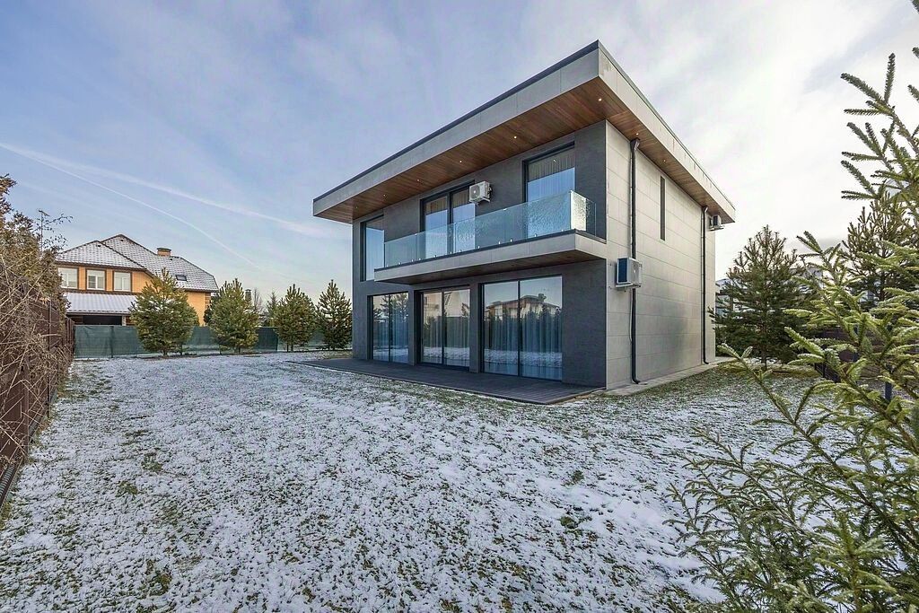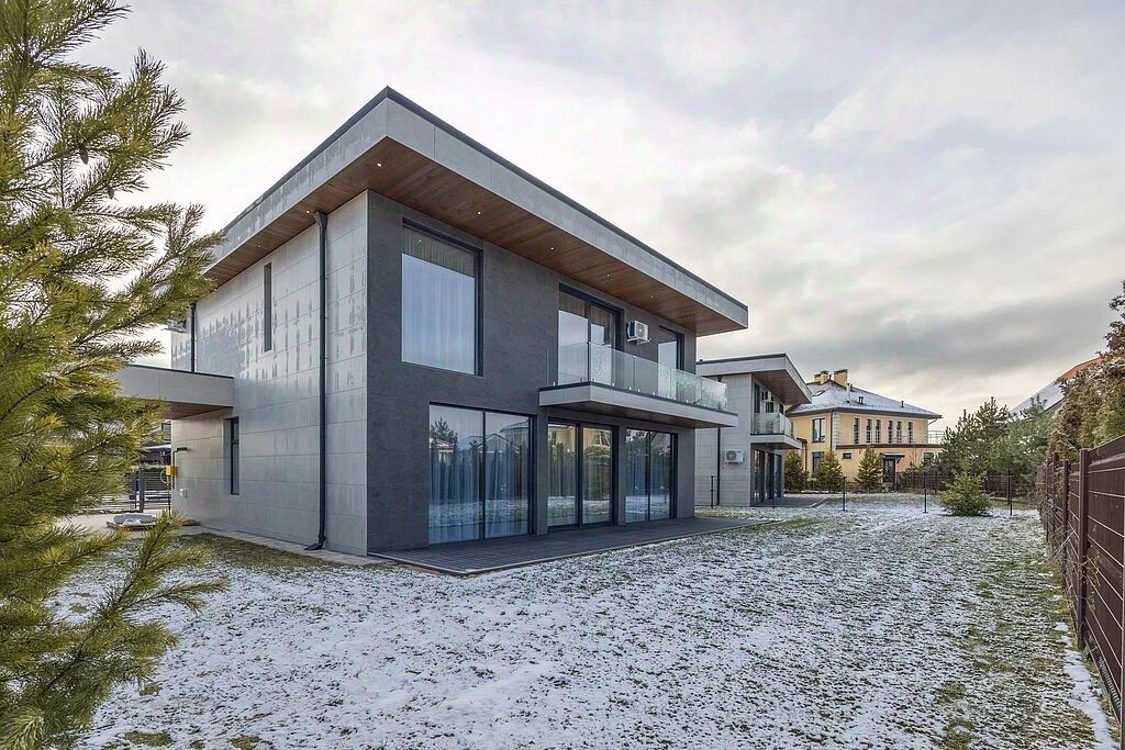 В доме 4 спальных комнаты, 4 гардеробные и 4 санузла. Современная отделка с использованием материалов класса DeLuxe создаёт ощущение роскоши и уюта. Терраса для отдыха на свежем воздухе и кабинет для сосредоточенной работы добавляют комфорта.