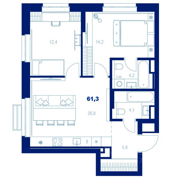 Здесь можно создать отдельную спальню, кабинет или просторную гостиную — планировка легко адаптируется под ваш стиль жизни.