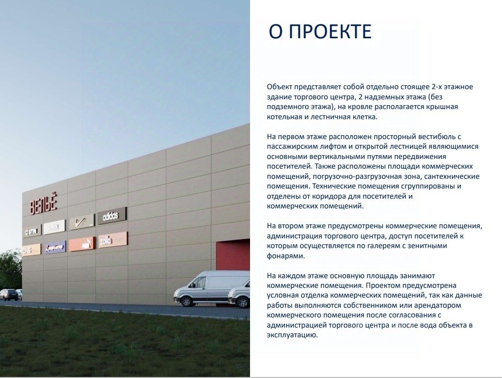 Торговый центр, находится на этапе строительства. Запланированный срок ввода в эксплуатацию июнь 2026 года.