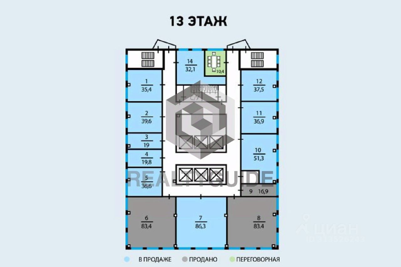 Офисный блок 666,1 м2 на 4-м этаже в бизнес-центре. Большие окна.