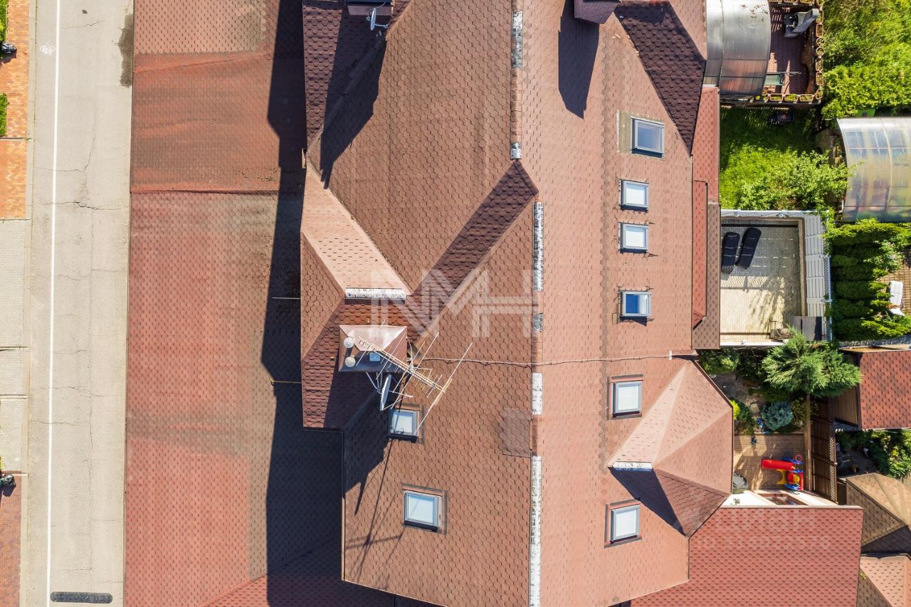 фундамент и перекрытия — монолитные. Стены — газоблоки, снаружи — декоративный кирпич и штукатурка короед. Окна — 3-х камерные стеклопакеты. Кровля — катепал. Высокие потолки — 3,2 м.