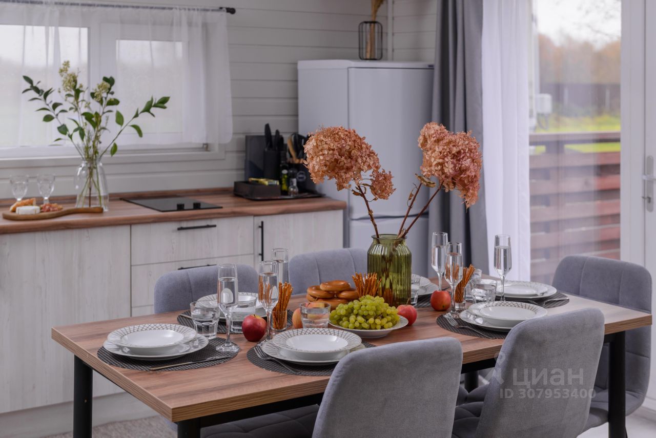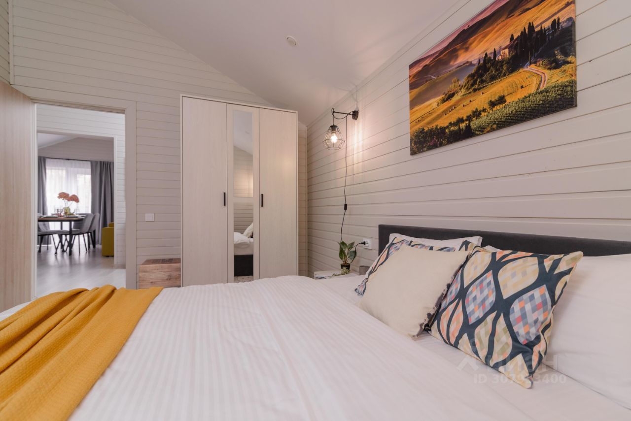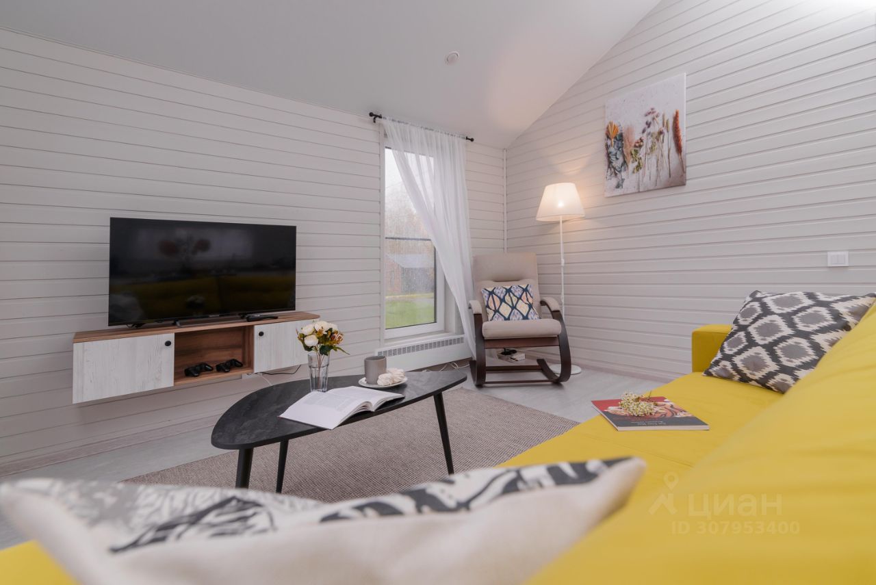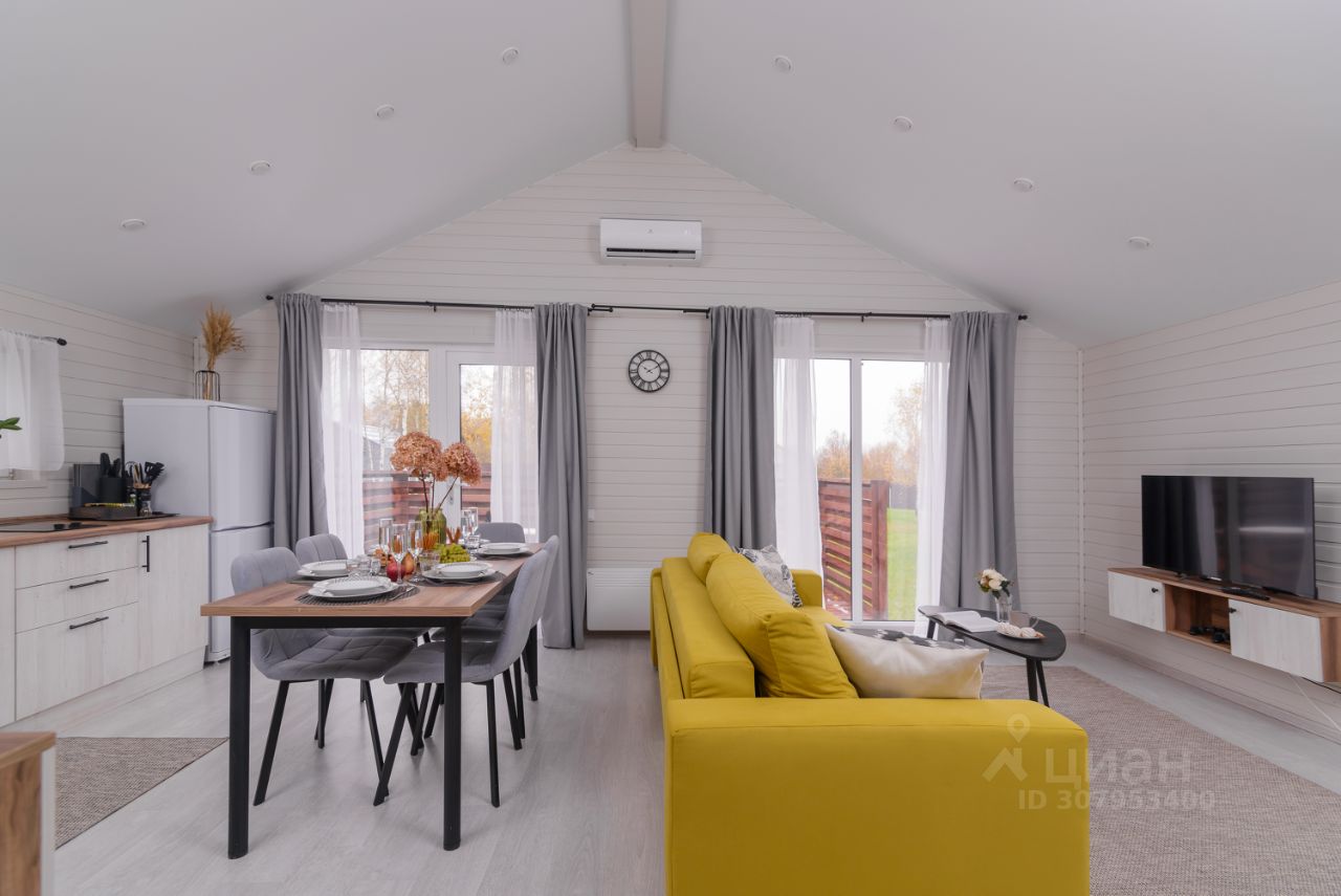 Особенности дома и участка: • У нас НЕТ ЗАБОРОВ, уютная атмосфера европейского поселка • На участке парковка на 2 машины, мангальная зона, костровая зона с удобными креслами • Современный каркасный дом 65 м² с небольшой открытой террасой • В доме 2 спальни (двуспальная и две односпальные кровати), кухня-гостиная (диван раскладной) и один санузел • Вмещает до 6 человек • Дом укомплектован мебелью и техникой • Полностью оборудованная кухня (плита, холодильник, свч, кофемашина, посуда) • Кондиционер, стиральная машина • Телевизор и Wi-Fi, игровая консоль с ретро играми