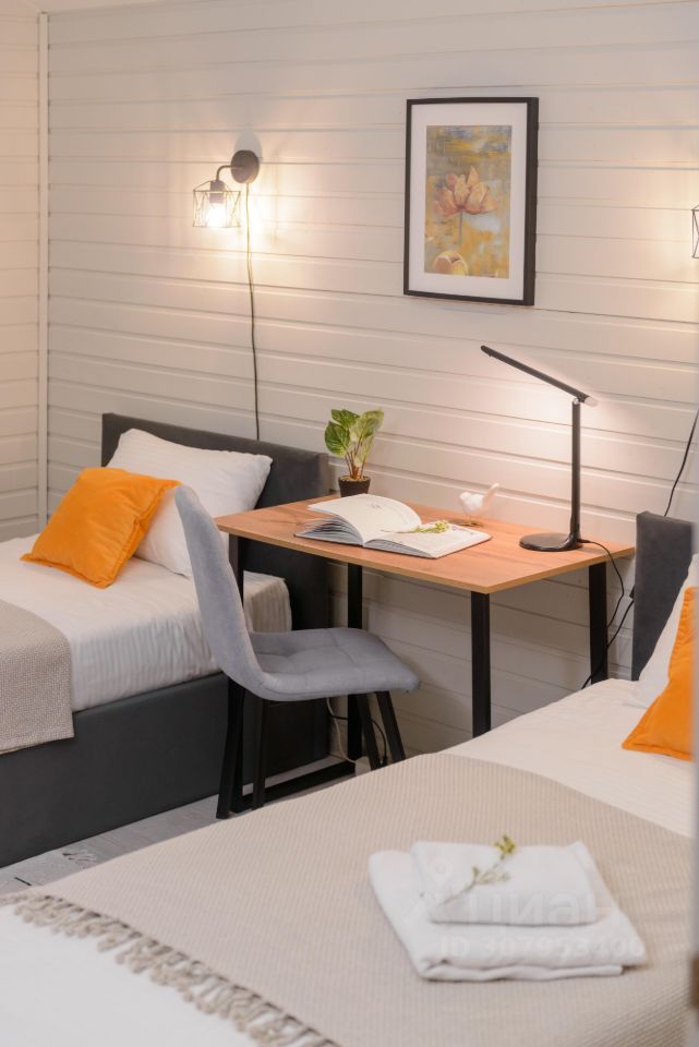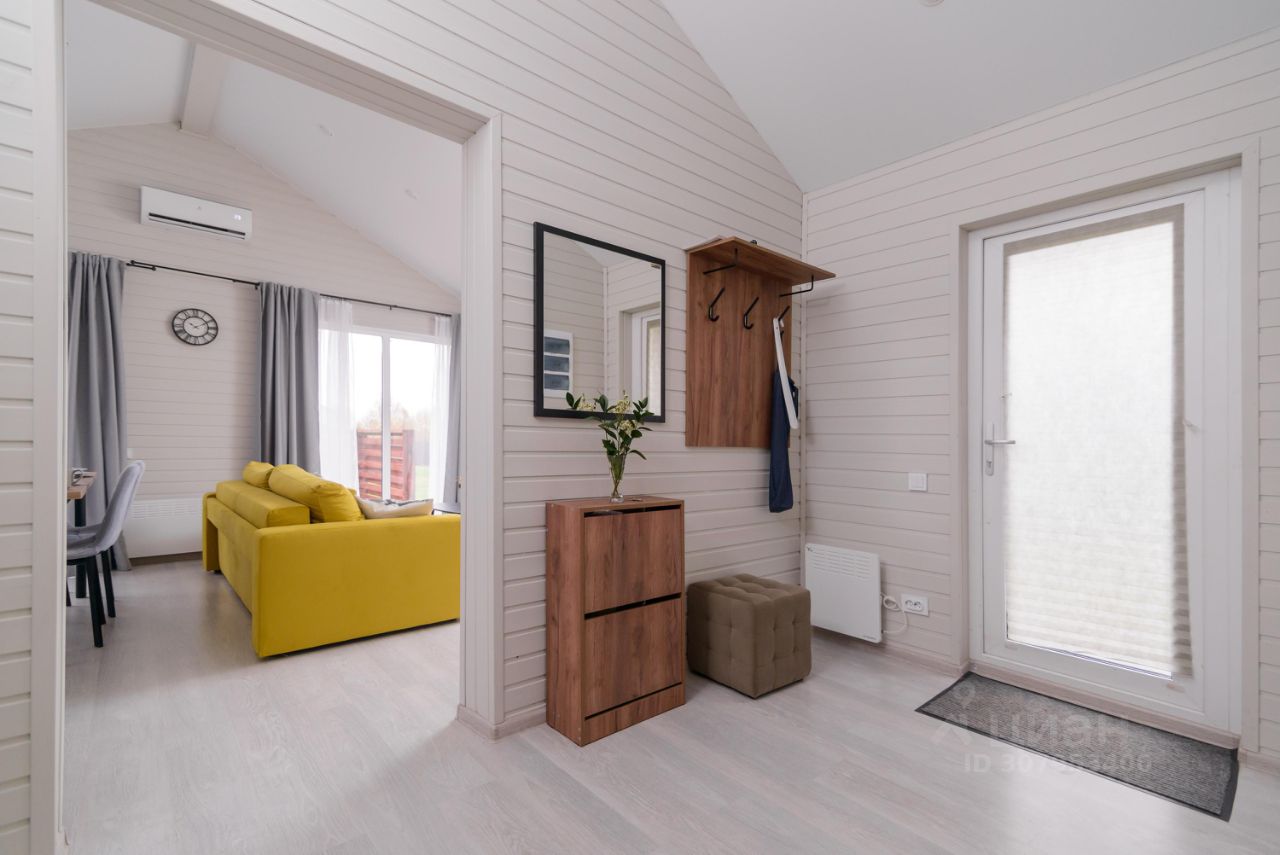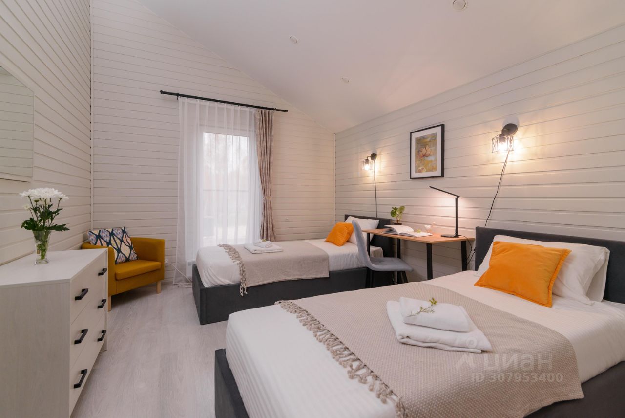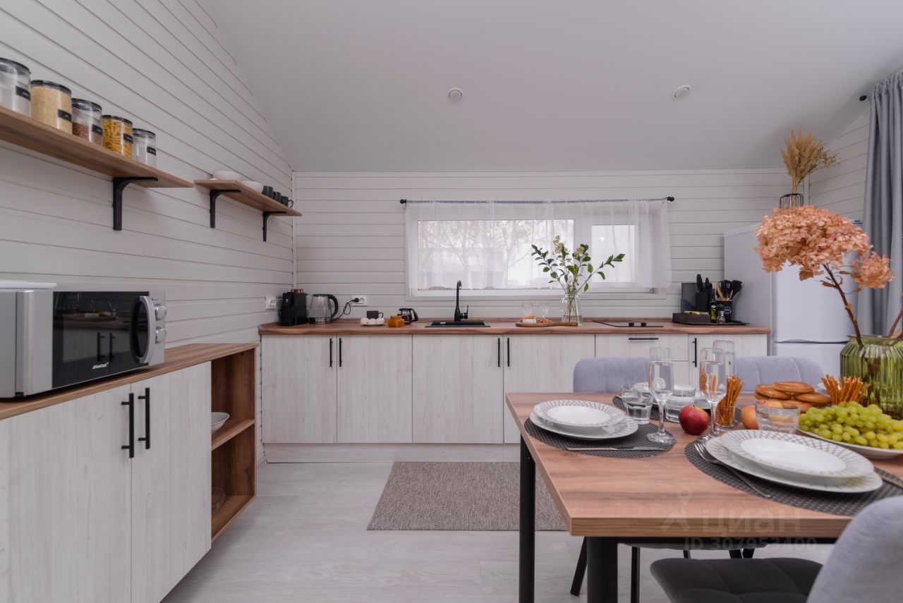 Особенности дома и участка: • У нас НЕТ ЗАБОРОВ, уютная атмосфера европейского поселка • На участке парковка на 2 машины, мангальная зона, костровая зона с удобными креслами • Современный каркасный дом 65 м² с небольшой открытой террасой • В доме 2 спальни (двуспальная и две односпальные кровати), кухня-гостиная (диван раскладной) и один санузел • Вмещает до 6 человек • Дом укомплектован мебелью и техникой • Полностью оборудованная кухня (плита, холодильник, свч, кофемашина, посуда) • Кондиционер, стиральная машина • Телевизор и Wi-Fi, игровая консоль с ретро играми