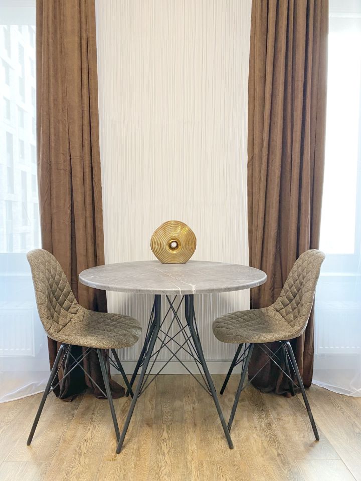 Благоустроенный двор с ландшафтным дизайном и физической охраной. На территории есть магазин, аптека, пекарня, кафе, детский сад и т.д.
