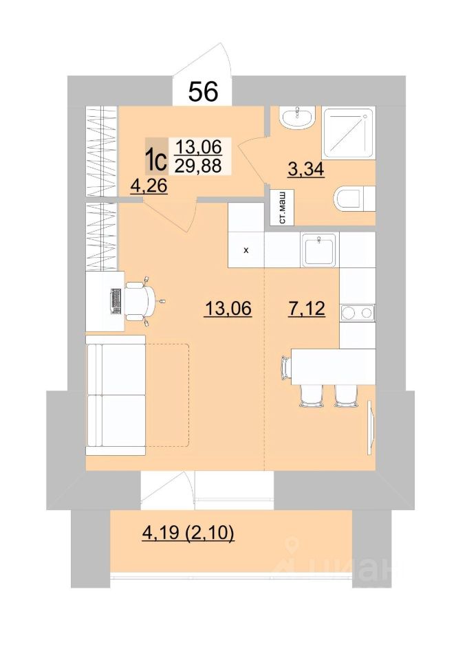 Общая площадь29,85 м2