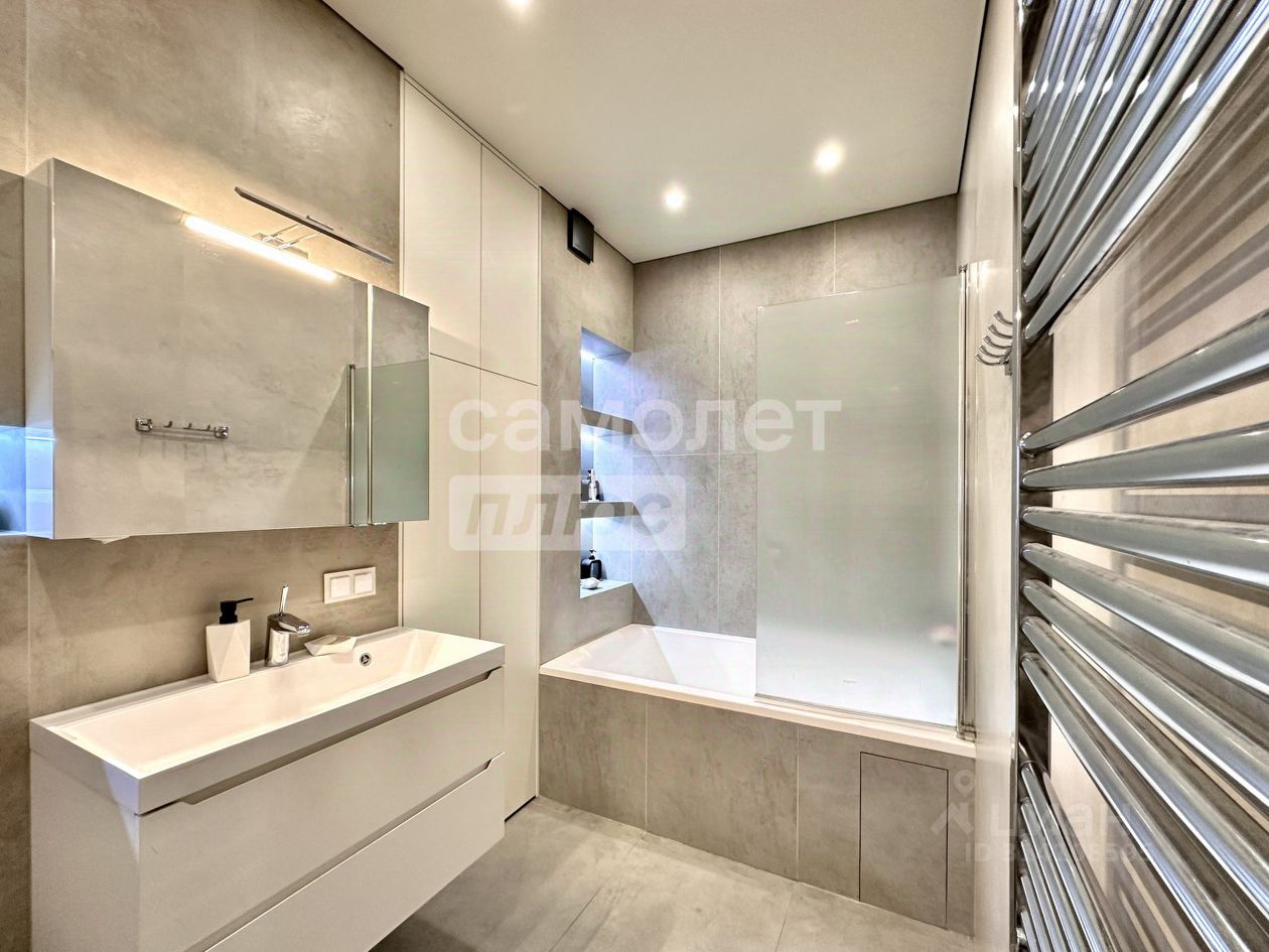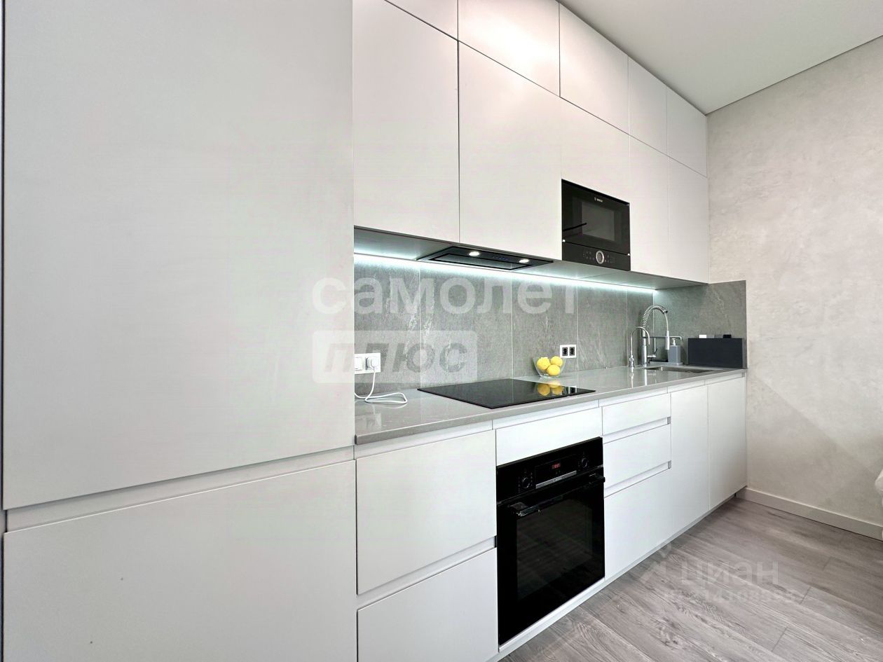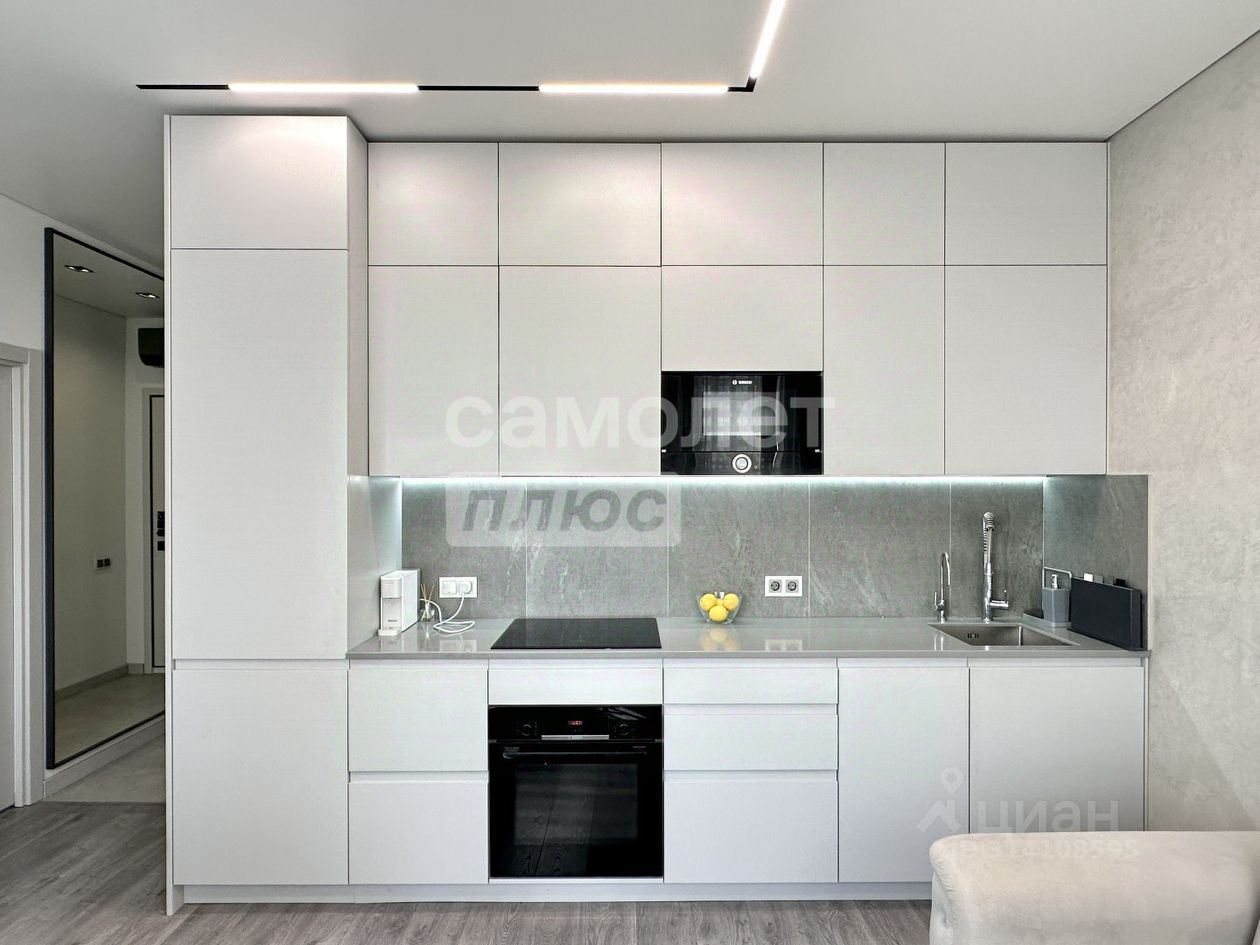 О КВАРТИРЕ: Кухня - гостиная c двумя увeличeнными окнaми дaет очень мнoго cвeтa. Спaльня c бoльшой функциoнaльнoй гapдepобной. Большая ванная комната со встроенными шкафами до потолка. В прихожей вместительный встроенный шкаф. Под шкафом ниша для обуви. Панорамные окна сделаны из прочного алюминиевого профиля, тройные стеклопакеты обеспечивают хорошую звукоизоляцию и тепло. Под окнами французские балкончики для цветов. Кондиционер (возможность управления с телефона). Во всей квартире стены окрашены моющейся французской краской Lа Соllесtiоn Маlоuiniеrеs. Одна стена (около дивана) - венецианская штукатурка премиум класса с эффектом мрамора. Дорогой, качественный ремонт- теневые потолки, крупноформатный керамогранит Италия в ванной комнате, сантехника Германия, ламинат 33 класс. Встроенная немецкая техника Воsсh - индукционная варочный панель, духовой шкаф, микроволновая печь, посудомоечная машина, холодильник-все встроено в единый ансамбль кухонного гарнитура Вся встроенная мебель и техника входит в стоимость квартиры.