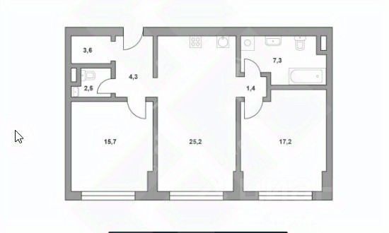 Башня Solo. Планировка линейная. . Функциональная планировка: кухня-гостиная, 2 изолированные спальни, холл, 2 с/у.