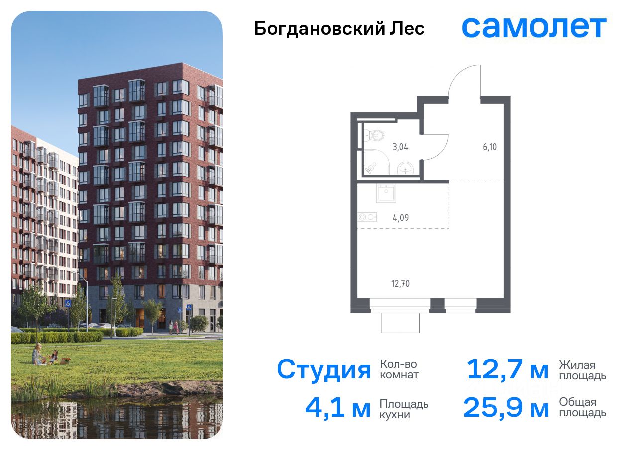 Предлагается квартира студия комфорт-класса 25,93 кв.м в корпусе 7.1 на 2 этаже, в ЖК ''Богдановский Лес'' Квартира без отделки. Доступность опции ''отделка'' и возможность комплектации мебелью и декором уточняйте у застройщика.