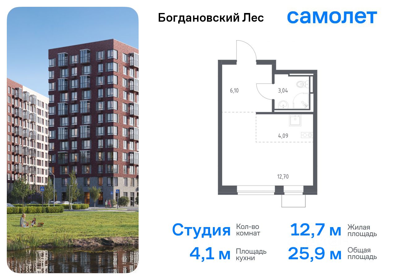 Предлагается квартира студия комфорт-класса 25,93 кв.м в корпусе 7.1 на 11 этаже, в ЖК ''Богдановский Лес'' Квартира без отделки. Доступность опции ''отделка'' и возможность комплектации мебелью и декором уточняйте у застройщика.