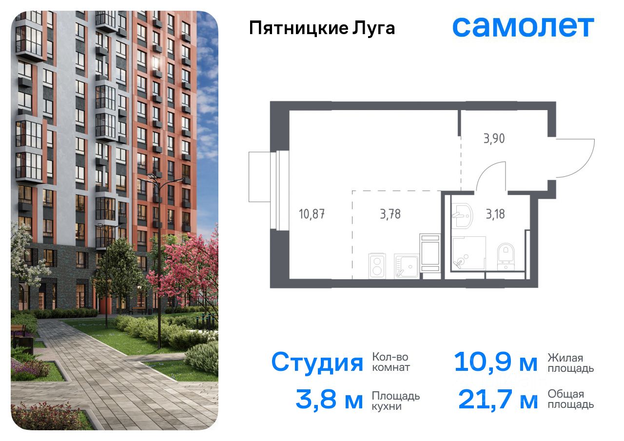 Предлагается квартира студия комфорт-класса 21,73 кв.м в корпусе 2.1 на 7 этаже, в ЖК ''Пятницкие Луга'' Квартира с чистовой отделкой. Доступность дополнительных опций уточняйте у застройщика.