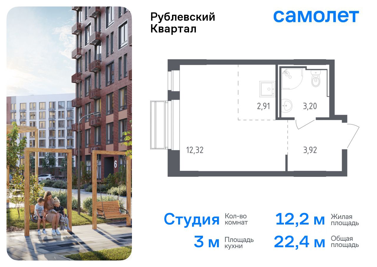 Предлагается квартира студия комфорт-класса 22,35 кв.м в корпусе 55 на 8 этаже, в ЖК ''Рублевский Квартал'' Квартира с чистовой отделкой. Доступность дополнительных опций уточняйте у застройщика.