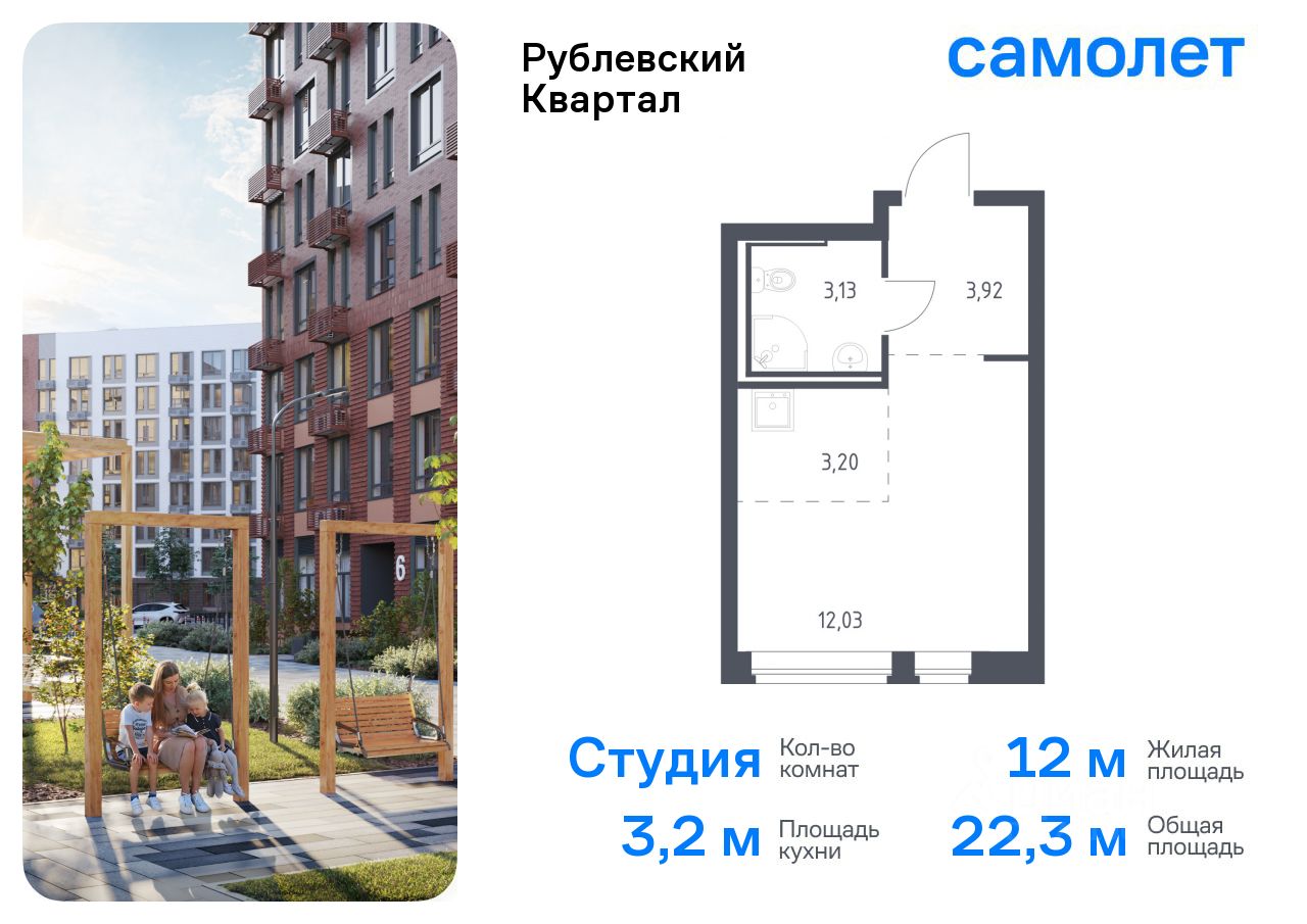 Предлагается квартира студия комфорт-класса 22,28 кв.м в корпусе 60 на 1 этаже, в ЖК ''Рублевский Квартал'' Квартира с чистовой отделкой. Доступность дополнительных опций уточняйте у застройщика.