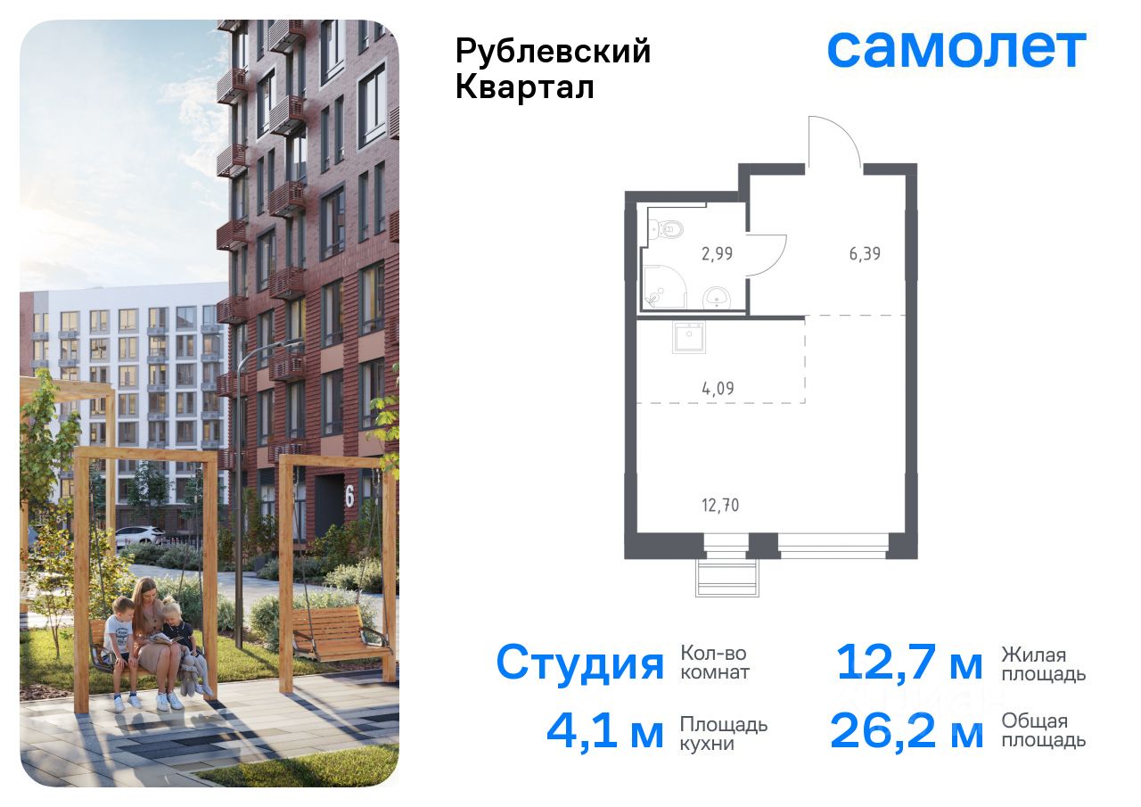 Предлагается квартира студия комфорт-класса 26,17 кв.м в корпусе 56 на 9 этаже, в ЖК ''Рублевский Квартал'' Квартира с предчистовой отделкой. Доступность дополнительных опций уточняйте у застройщика.