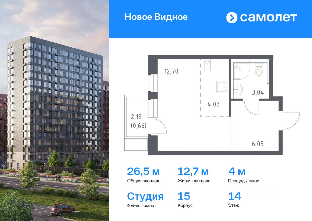 Предлагается квартира студия комфорт-класса 26,48 кв.м в корпусе 15 на 14 этаже, в ЖК ''Новое Видное'' Квартира с чистовой отделкой. Доступность дополнительных опций уточняйте у застройщика.